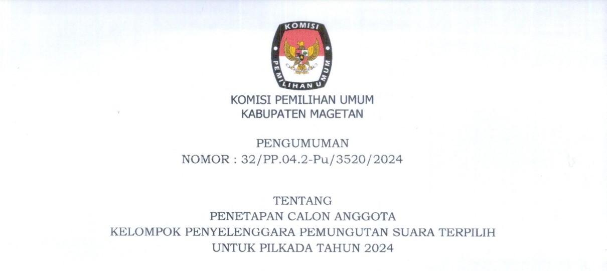 #TemanPemilih, Komisi Pemilihan Umum Kabupaten Magetan melalui perantara Kantor Pelayanan Kekayaan Negara dan Lelang (KPKNL) Madiun akan melaksanakan penjualan lelang terhadap Barang Milik Negara (BMN) berupa satu paket BMN berupa Barang Habis Pakai eks Pemilu/Pemilihan Tahun 2024.