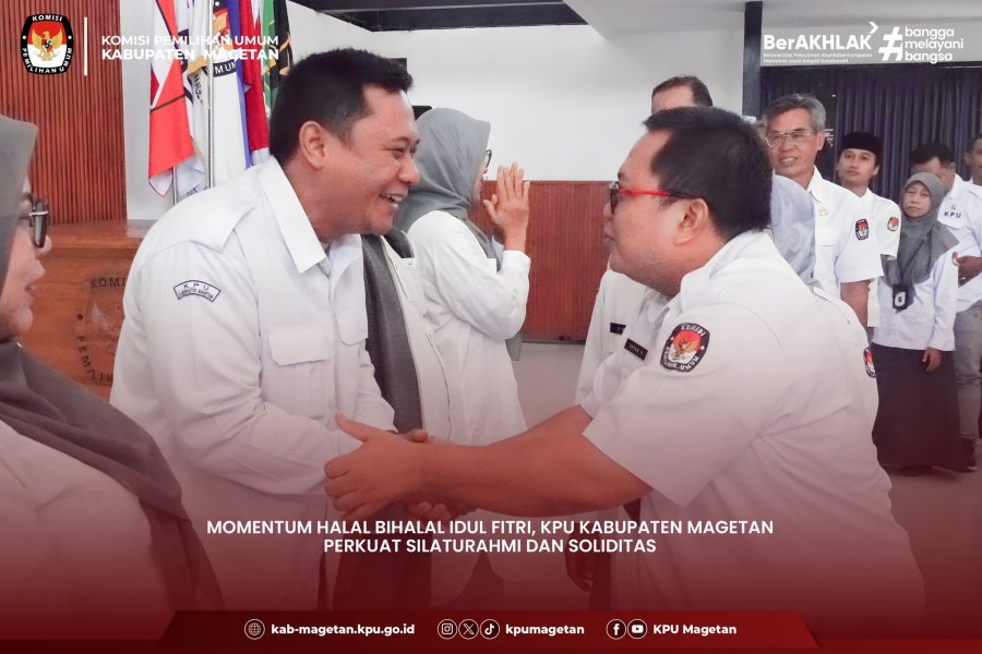“Dalam suasana yang fitri ini, saya secara pribadi dan atas nama pimpinan KPU Kabupaten Magetan menyampaikan mohon maaf lahir dan batin atas segala kesalahan dan khilaf. Semoga kebersamaan ini semakin memperkuat soliditas kita dalam menjalankan tugas ke depan,” ujar Noviano.