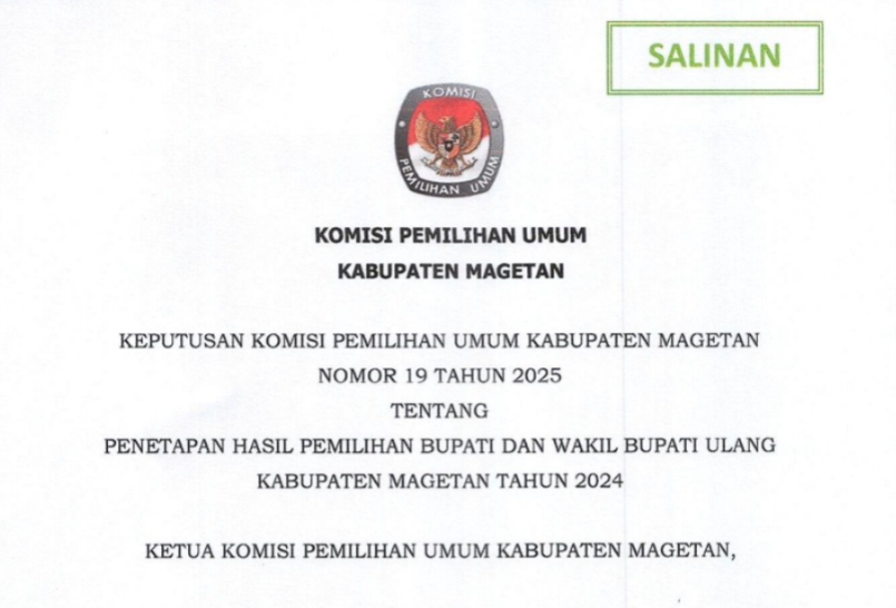 KEPUTUSAN KPU KABUPATEN MAGETAN NOMOR 19 TAHUN 2025 TENTANG PENETAPAN HASIL PEMUNGUTAN SUARA ULANG PEMILIHAN BUPATI DAN WAKIL BUPATI MAGETAN TAHUN 2024