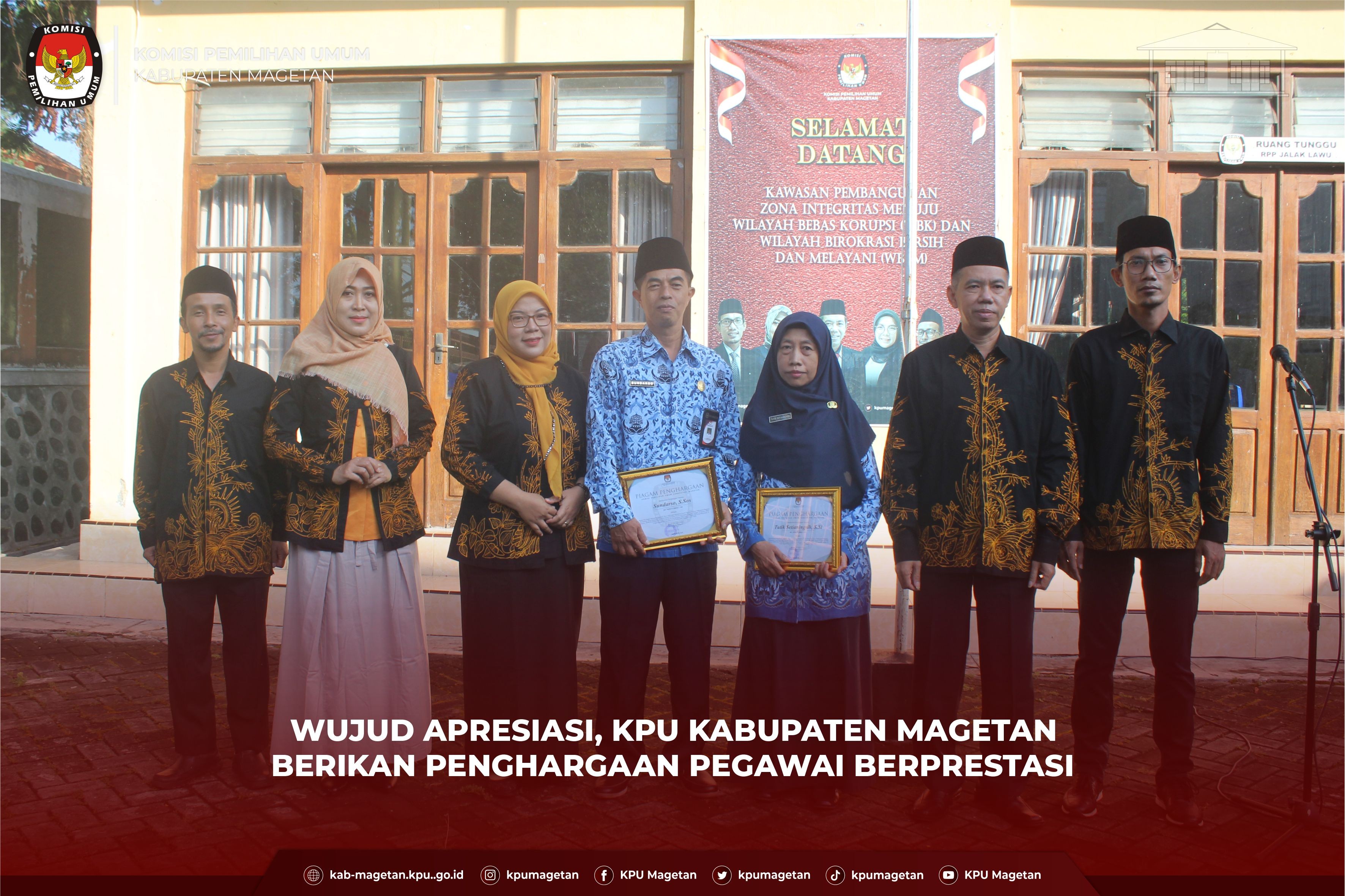 Kedua pegawai berprestasi tersebut adalah Sundarso yang terpilih sebagai Kasubbag berprestasi dan Tutik Setianingsih sebagai staf berprestasi terbaik. Ketua KPU Kabupaten Magetan, Fahrudin mengatakan, pemberian penghargaan pegawai berprestasi ini merupakan dalam rangka rangkaian kegiatan peringatan HUT ke-77 Republik Indonesia