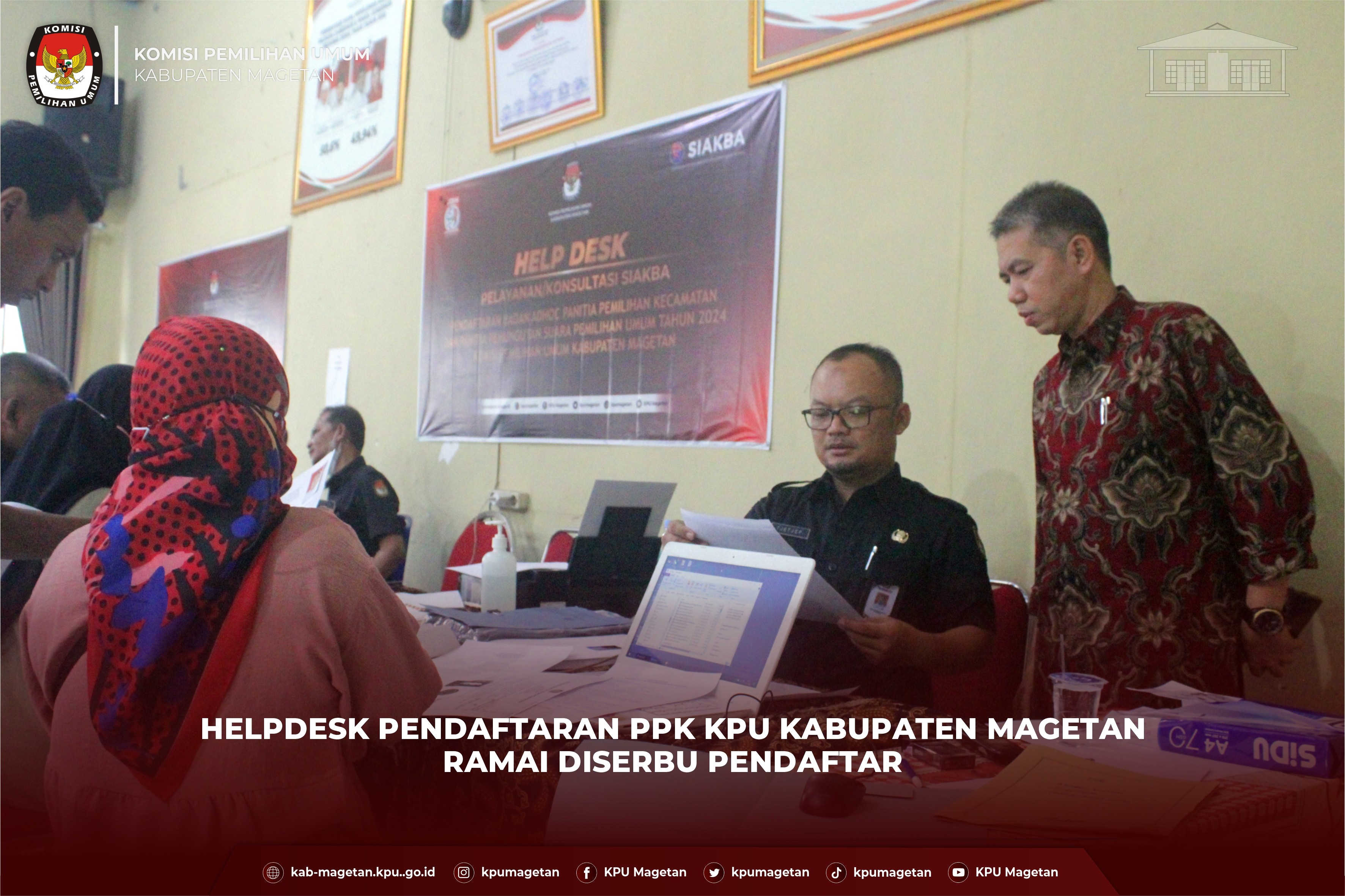 kab-magetan.kpu.go.id - Pendaftaran Panitia Pemilihan Kecamatan (PPK) Pemilu Serentak 2024 Kabupaten Magetan yang hingga kini tengah berlangsung semakin banyak diserbu oleh para pendaftar. Tak ayal, Helpdesk Pendaftaran PPK KPU Kabupaten Magetan juga ramai didatangi oleh pendaftar. Helpdesk Pelayanan Pendaftaran PPK tersebut buka setiap hari mulai pukul 08.00 hinggal 16.00 WIB. Banyak pendaftar yang mendatangi helpdesk dengan berbagai macam konsultasi seperti pendaftaran melalui SIAKBA. "Ada beberapa pendaftar yang memang ingin langsung mendaftar dengan mendatangi kantor KPU Kabupaten Magetan. Namun tetap kami arahkan di helpdesk kami untuk mendaftar melalui SIAKBA, tentunya kami selalu membimbing mereka hingga proses pendaftaran berhasil." Ungkap petugas helpdesk, Sugiarto. KPU Kabupaten Magetan sendiri hingga Kamis, 24 November 2022 pukul 16.00 WIB mencatat telah ada 598 pendaftar yang telah mendaftar sebagai calon anggota PPK. Adapun pendaftaran PPK ini akan terus dibuka hingga 29 November 2022 mendatang (br)