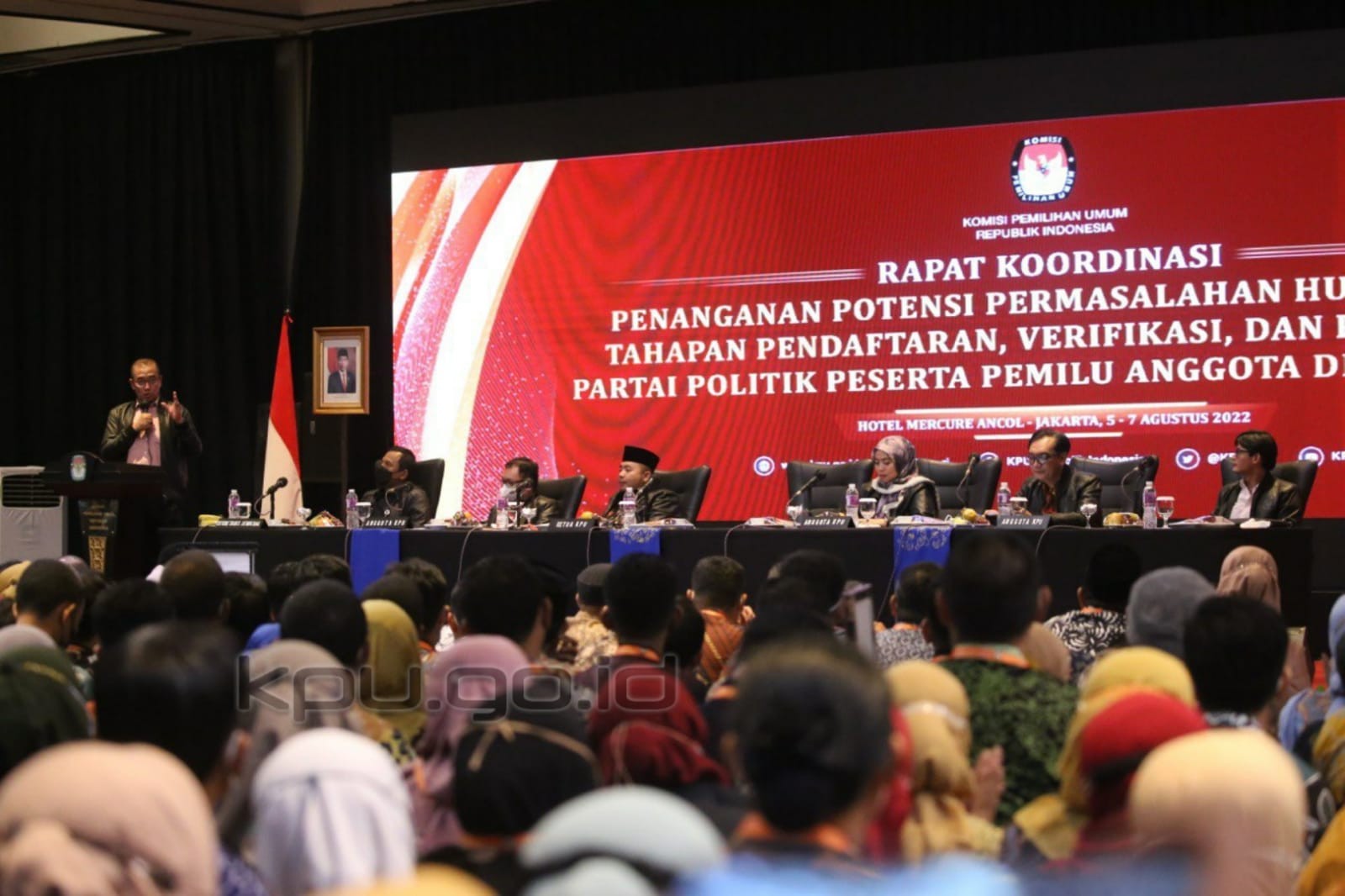 Sejak awal hingga akhir, Tahapan Pendaftaran, Verifikasi, dan Penetapan Partai Politik Peserta Pemilu Anggota DPR dan DPRD selalu memiliki potensi permasalahan hukum. Oleh karena itu, KPU mengkoordinasi jajaran penyelenggara di bagian hukum, supaya bisa mengidentifikasi potensi masalah, kemudian menyiapkan strategi untuk mencari solusi untuk menghadapi masalah tersebut.