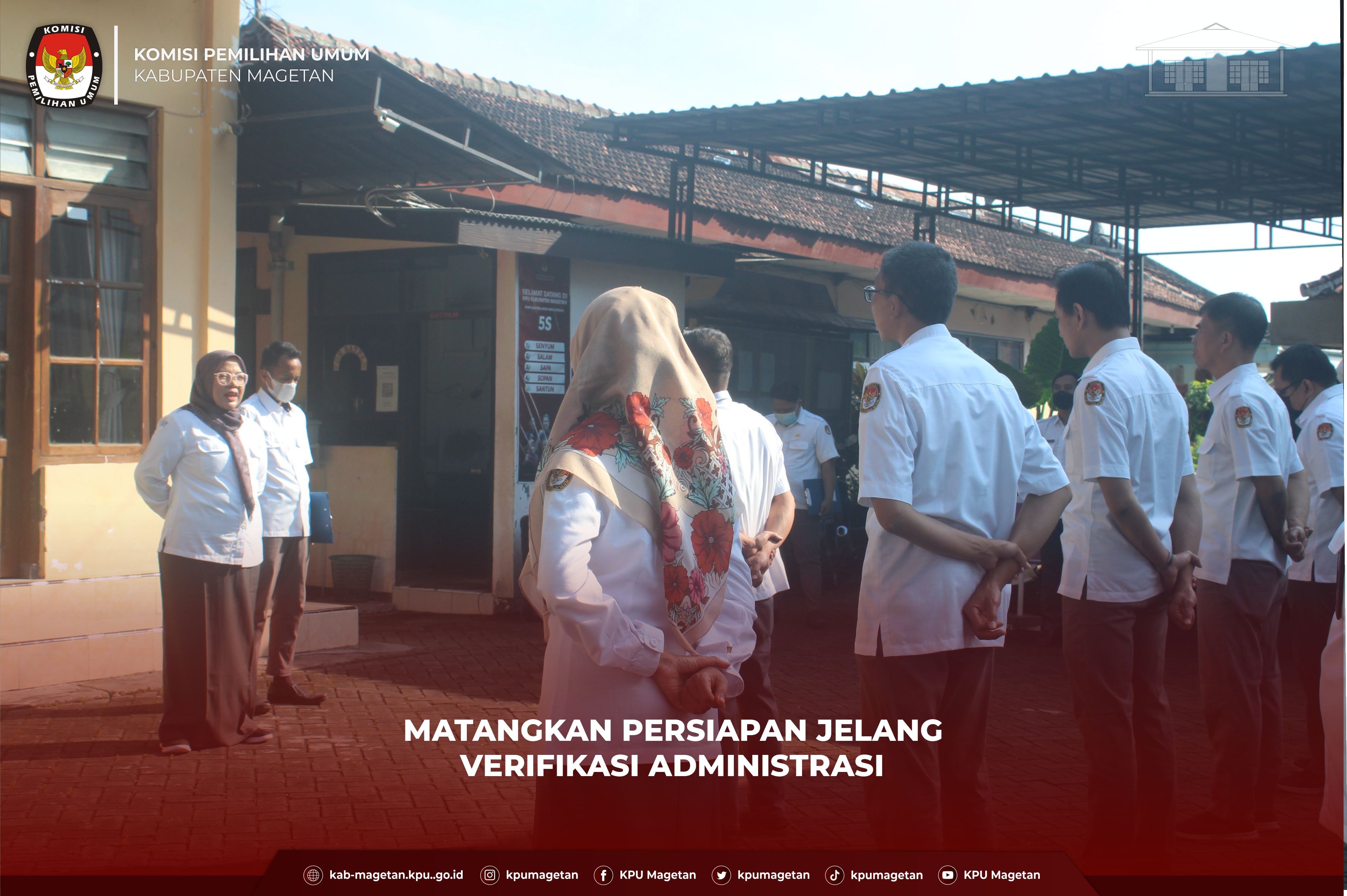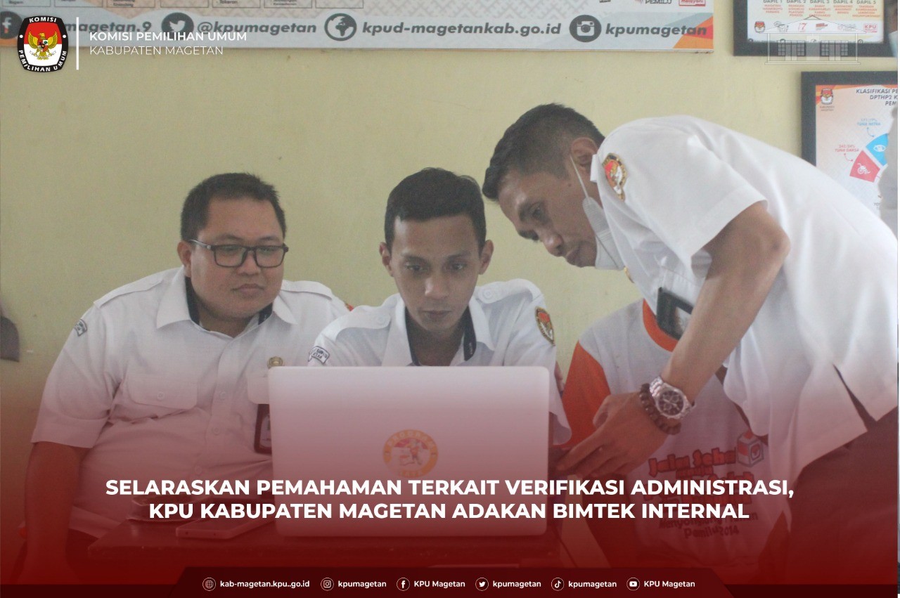 kab-magetan.kpu.go.id - Kooordinator Divisi Perencanaan Data dan Informasi KPU Kabupaten Magetan, Nanik Yasiroh serukan kepada seluruh jajaran kesekretariatan KPU Kabupaten Magetan untuk mempersiapkan diri maupun teknis secara matang jelang dimulainya tahapan verifikasi administrasi. Hal tersebut ia sampaikan saat apel pagi Senin, (15/8) yang dilaksanakan di halaman sekretariat KPU Kabupaten Magetan. "Saya harapkan agar persiapan terkait tahapan verifikasi administrasi dapat disiapkan dengan matang mengingat tahapan verifikasi administrasi di ruang lingkup KPU Kabupaten/Kota akan mulai dilaksanakan terhitung mulai dari 16 Agustus 2022." Ungkap Nanik Yasiroh. Nanik Yasiroh juga mengingatkan kepada sekretariat KPU Kabupaten Magetan agar tetap menjalankan setiap tugas yang didapat entah itu terkait tahapan Pemilu ataupun tugas dari Divisi masing-masing. "Saya harapkan agar teman-teman semuanya tetap menjalankan setiap tugas yang diberikan dengan baik, entah tugas itu yang berkaitan dengan tahapan Pemilu seperti verifikasi administrasi nanti maupun tugas-tugas yang telah menjadi tugas pokok di Divisi masing-masing." Jelasnya. Apel pagi ini diikuti oleh Komisioner, Sekretaris, Kasubbag hingga staf sekretariat KPU Kabupaten Magetan dan dipimpin oleh Kasubbag Subbagian Teknis Penyelenggaraan Pemilu, Partisipasi dan Hubungan Masyarakat, Priyo Susilo. (br)