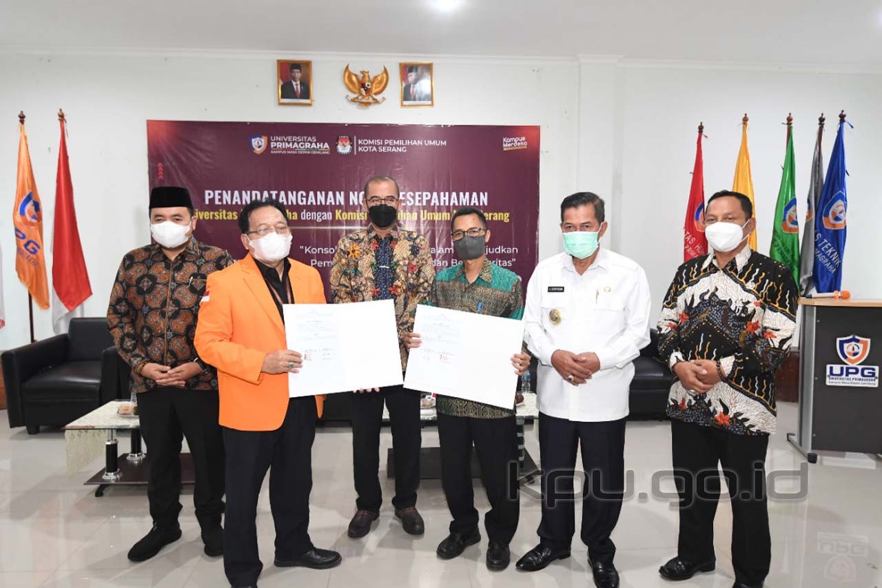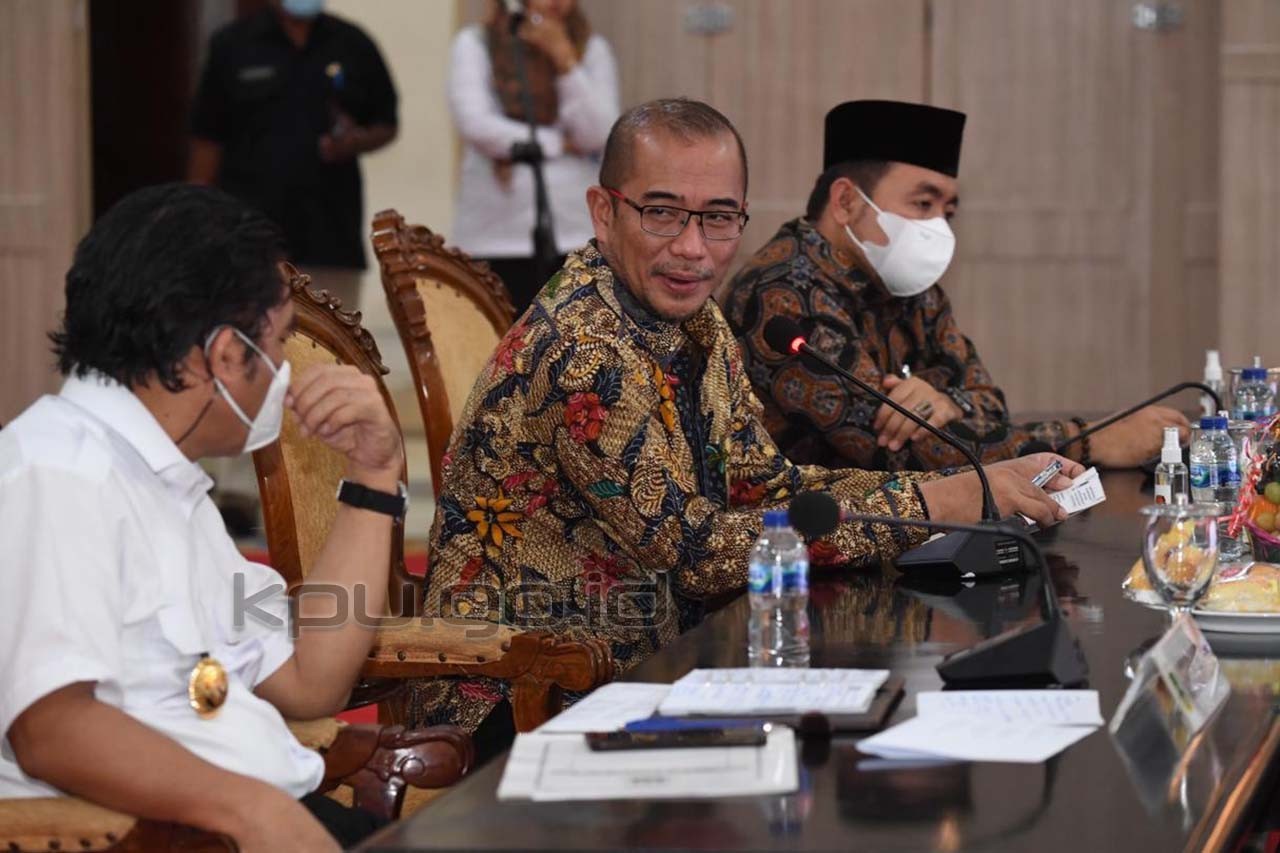 Serang, kpu.go.id – Upaya Komisi Pemilihan Umum (KPU) menjalin komunikasi dan konsolidasi terus berlanjut. Terbaru pada Rabu (25/5/2022), Ketua KPU RI Hasyim Asy’ari dan Anggota KPU RI Mochammad Afifuddin bersama Sekretaris Jenderal KPU RI Bernad Dermawan Sutrisno beraudiensi dan konsolidasi dengan Pemerintah Provinsi Banten di Kantor Gubernur Provinsi Banten. Pertemuan ini dimanfaatkan untuk menegaskan kembali komitmen kerja bersama menyukseskan Pemilu dan Pemilihan 2024. Sebab tanggungjawab tersebut tidak hanya berada pada pundak penyelenggara tapi juga semua pihak. “Oleh karenannya pertemuan ini merupakan upaya KPU untuk membangun kerja sama dan kolaborasi terutama untuk pemenuhan tugas dan tanggung jawab penyelenggaraan pemilihan dan pemilu 2024 dengan berbagai pihak,” ungkap Hasyim. Lebih lanjut Hasyim mengatakan kerja sama tidak hanya menyangkut tentang ketersediaan anggaran, melainkan juga keamanan dan ketertiban masyarakat. Apalagi potensi kerawanan pemilu dan pemilihan bisa saja terjadi sewaktu-waktu, terlebih pelaksanaannya akan berlangsung di tahun yang sama. “Kalau dulu konflik ini dengan senjata, kalau sekarang diubah dengan surat suara, ini yang perlu kita pahami bersama. Kembali, Hasyim berharap dengan telah ditunjuknya penjabat (Pj) di Provinsi Banten, KPU berharap komitmen menyukseskan Pemilu dan Pemilihan 2024 tetap berlanjut. “Hal-hal yang kami minta dalam konsolidasi dan audiensi ini adalah dukungan-dukungan dari pemerintah daerah dan para pihak terkait” ujar Hasyim. Pj Gubernur Banten, Almuktabar beserta seluruh perwakilan dari Forum Koordinasi Pimpinan Daerah (Forkopimda) Banten menyatakan siap mendukung KPU dalam menyukseskan tahapan penyelenggaraan Pemilu dan Pemilihan Serentak tahun 2024. Turut hadir Kepala Biro Partisipasi dan Hubungan Masyarakat Setjen KPU RI Cahyo Ariawan, Kepala Biro Umum Setjen KPU RI M Syahrizal Iskandar, Ketua, Anggota dan Sekretaris KPU Provinsi Banten, Sekretaris Daerah Provinsi Banten, Ketua Komisi I DPRD Banten serta perwakilan dari OPD Provinsi Banten. (humas kpu ri idan/foto: hilvan/ed diR) Sumber : https://www.kpu.go.id/berita/baca/10544/bangun-kolaborasi-sukseskan-pemilu-dan-pemilihan-2024