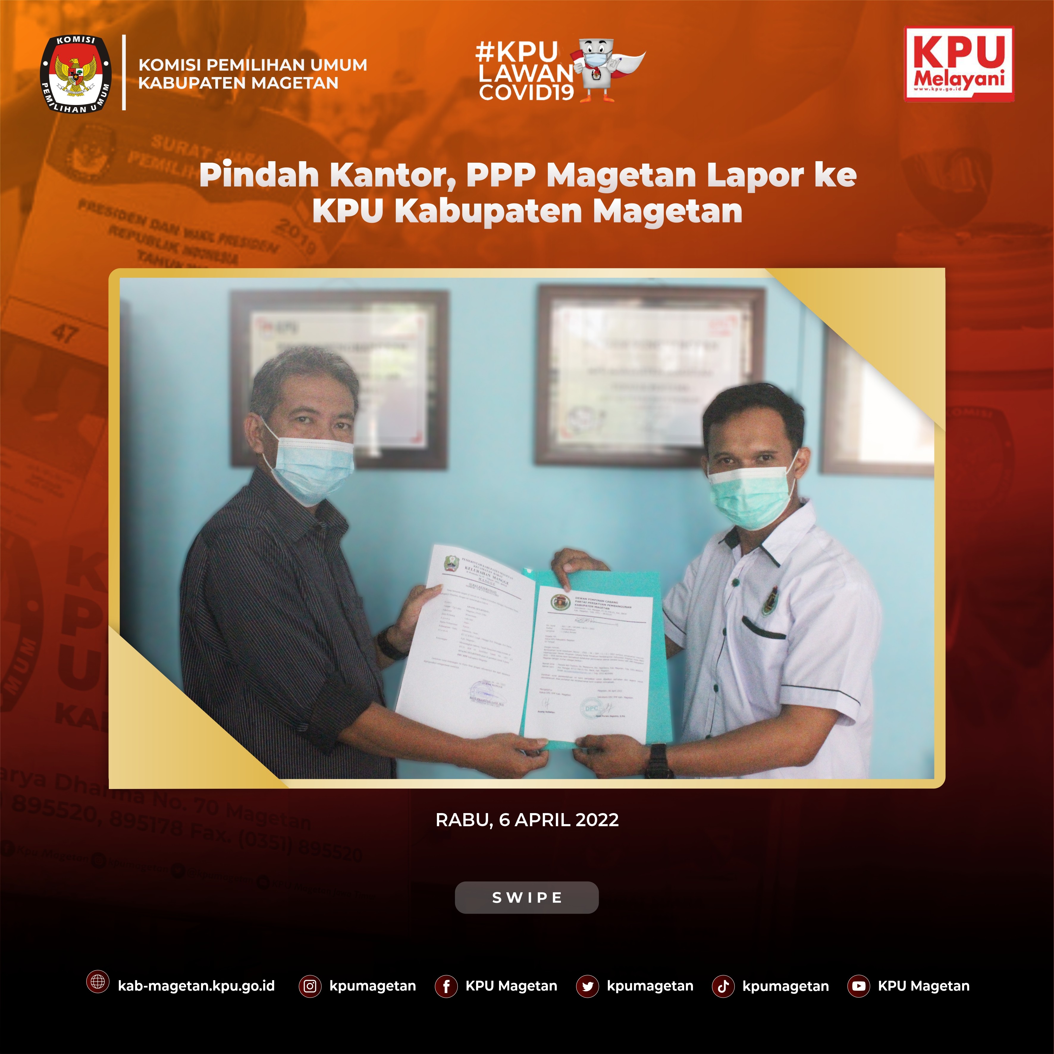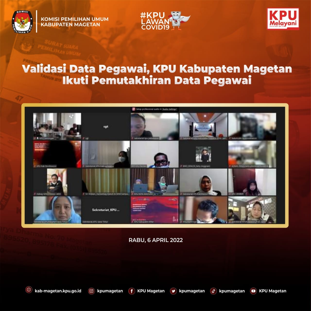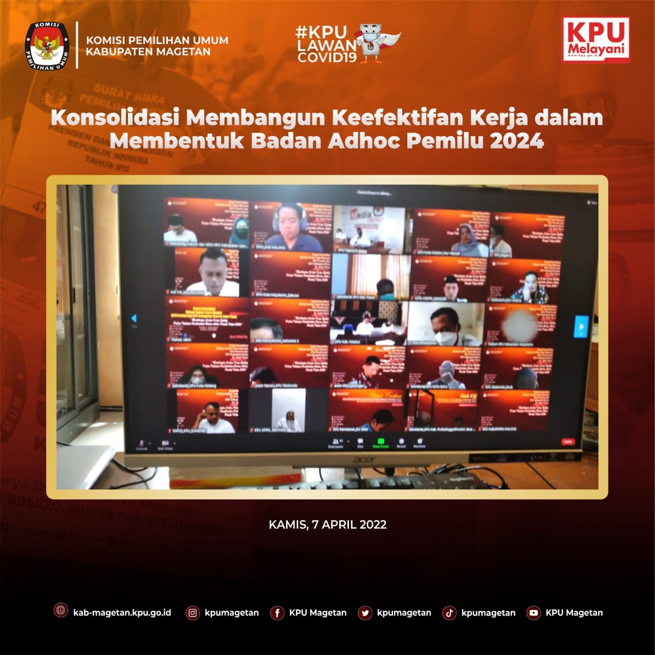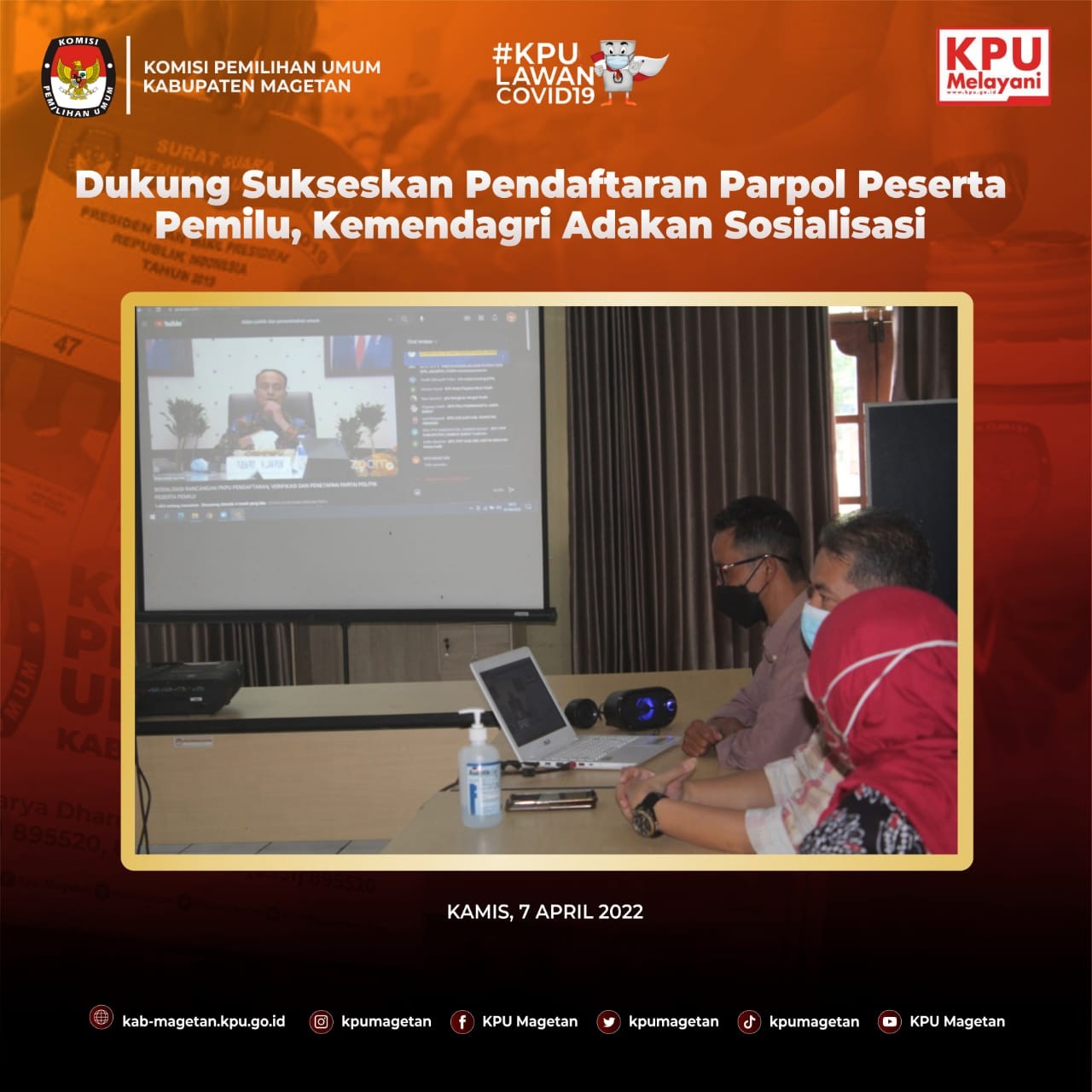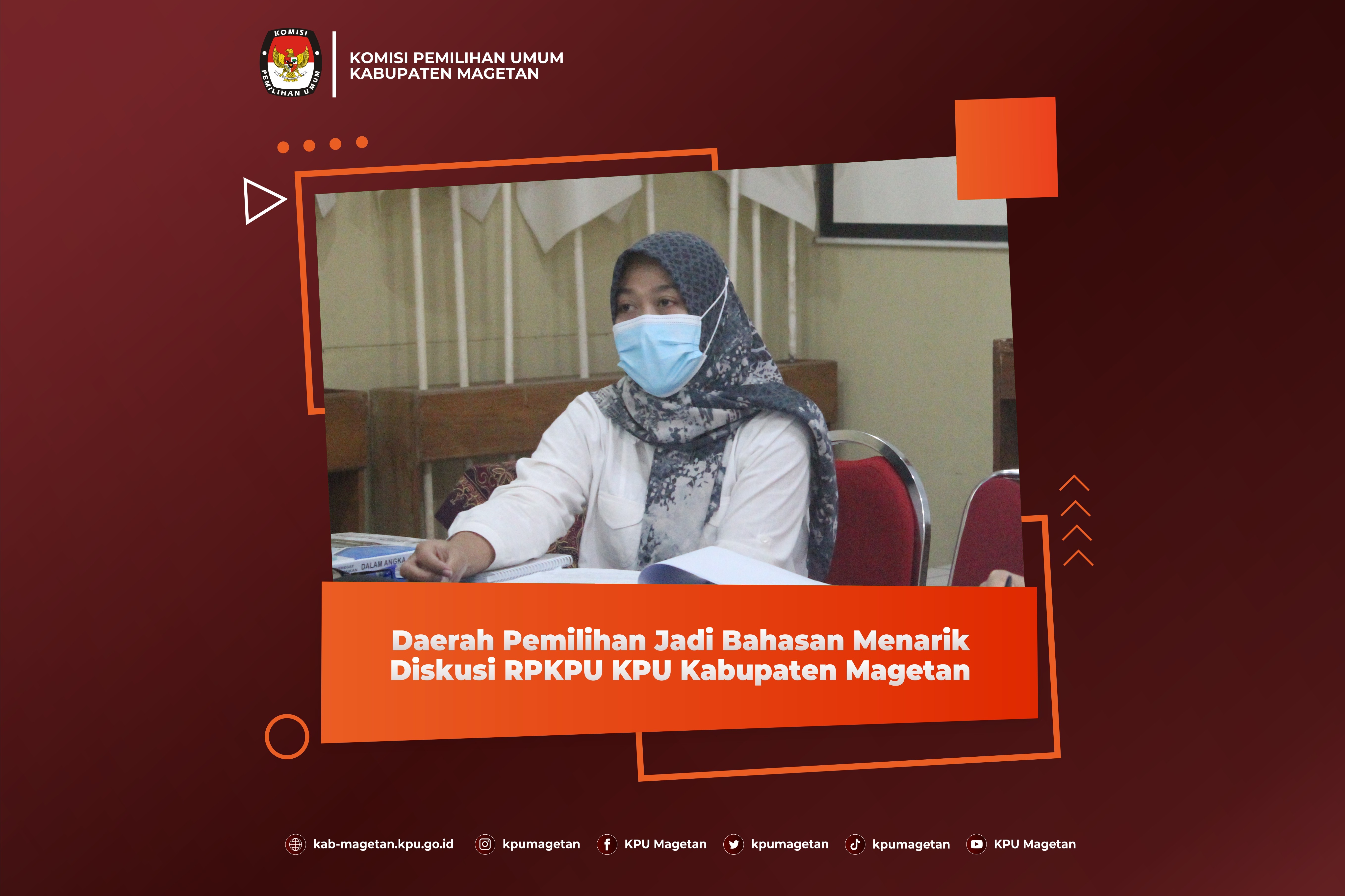 Bahasan rancangan Peraturan Komisi Pemilihan Umum (RPKPU) pada Senin (11/4) adalah mengenai daerah pemilihan. Seluruh jajaran staf dan anggota hadir pada pembahasan RPKPU pagi ini di Aula Jalak Lawu KPU Kabupaten Magetan. "Hari ini kita membahas terkait daerah pemilihan. Bagaimana penataanya serta bagaimana alokasi kursi DPRD Kabupaten/Kota." Tutur Koordinator Divisi Teknis Penyelenggaraan KPU Kabupaten Magetan, Istikah. Daerah pemilihan adalah hal penting dalam penyelenggaraan Pemilu sehingga diperlukan penataaan. Penataan dapil tersebut juga harus memenuhi 7 prinsip penataan dapil dan alokasi kursi. "Alhamdulillah bahasan diskusi kali ini adalah penataan dapil dan alokasi kursi anggota DPRD. Banyak ilmu-ilmu baru dan penting yang masuk kedalam Rancangan Peraturan KPU kali ini." Jelas Istikah Bahan diskusi ini diharapkan dapat menambah ilmu dan pengetahuan bagaimana penataan suatu daerah pemilihan. Persiapan ini yang bermanfaat dalam menyongsong Pemilu Serentak 2024.