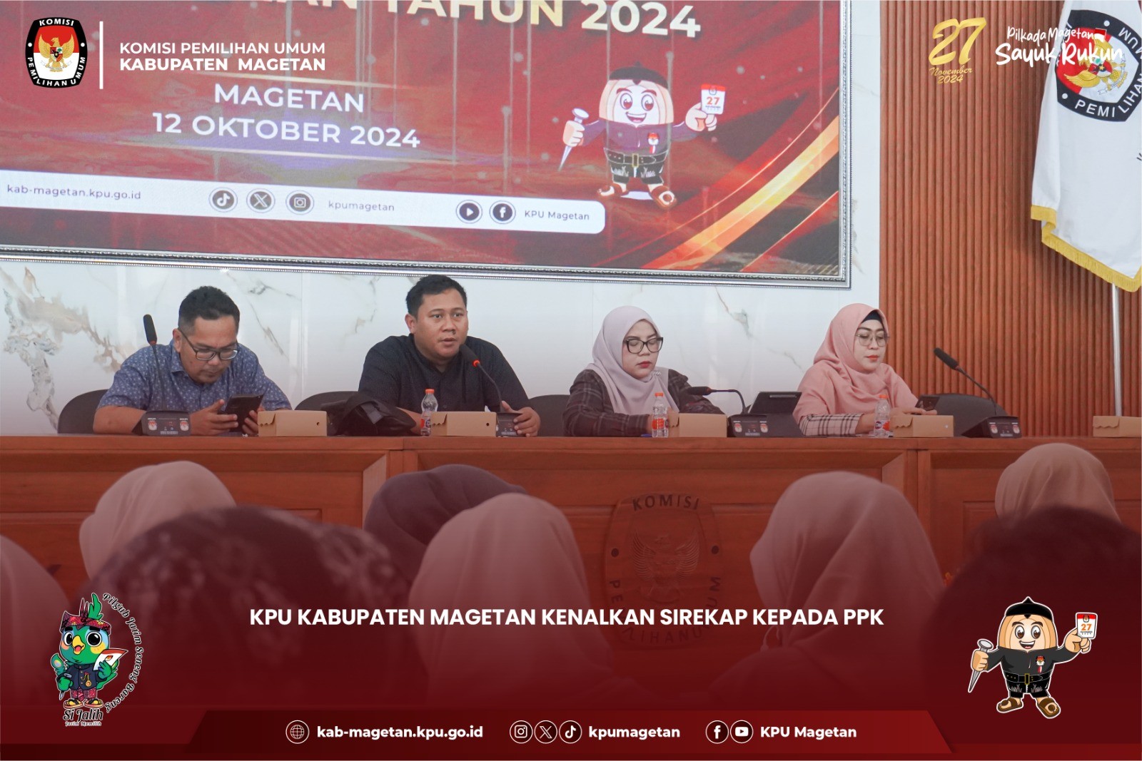 Magetan, kab-magetan.kpu.go.id - KPU Kabupaten Magetan mengadakan rapat kerja penggunaan aplikasi SIREKAP yang dihadiri oleh PPK Divisi Teknis dan Divisi Data, Sabtu (12/10). Acara ini diadakan untuk meningkatkan pemahaman dan keterampilan PPK dalam mengelola hasil pemungutan suara secara efisien. “Dengan hadirnya aplikasi SIREKAP, diharapkan proses rekapitulasi data pemilihan menjadi lebih cepat dan akurat,” ungkap Ketua KPU Kabupaten Magetan, Noviano Suyide. Dalam kesempatan tersebut, para narasumber menjelaskan secara rinci mengenai fitur-fitur aplikasi SIREKAP, termasuk cara input data, verifikasi, dan pengolahan data. Dengan pelatihan ini, PPK diharapkan dapat mengoptimalkan penggunaan teknologi dalam pelaksanaan tugas mereka, serta meminimalisir kesalahan dalam pengolahan data. Selain itu, KPU Kabupaten Magetan juga menekankan pentingnya kolaborasi antar divisi untuk memastikan kelancaran proses pemilihan. Divisi Teknis dan Divisi Data diharapkan dapat bekerja sama dalam menangani setiap kendala yang muncul saat penggunaan aplikasi. (br)