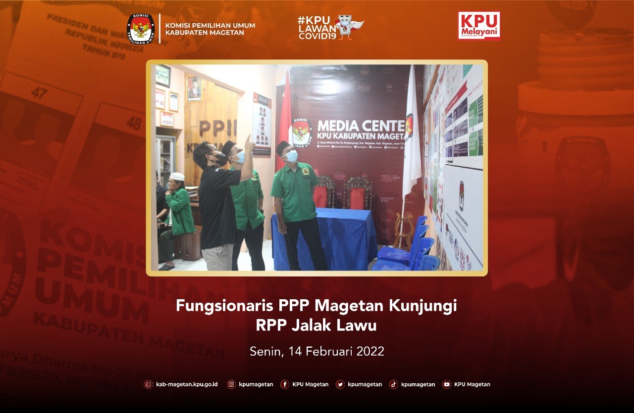 kab-magetan.kpu.go.id - Bertepatan dengan launching hari pemungutuan suara Pemilu serentak 2024, RPP Jalak Lawu KPU Kabupaten Magetan menerima kunjungan dari PPP Magetan, Senin (15/2).