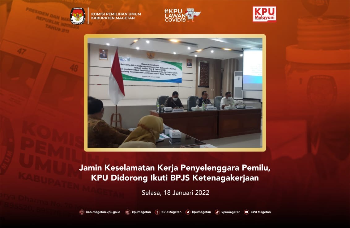 MADIUN, kab-magetan.kpu.go.id - Potensi kecelakaan kerja dinilai semakin tinggi disemua profesi termasuk pada penyelenggara Pemilu. Sehingga dibutuhkan adanya sebuah jaminan sosial bagi pekerja atau karyawan dilembaga formal ataupun non formal saat mengalami kecelakaan kerja. Kondisi ini mencuat dalam rapat koordinasi bersama BPJS ketenagakerjaan dan Bakorwil 1 Madiun yang diikuti Anggota KPU Kabupaten Magetan Nur Salam bersama pemerintah daerah se-wilayah Bakorwil Madiun, selasa (18/01/2021). Rapat dihadiri Kepala Bakorwil Madiun, Kepala BPJS ketenagakerjaan Madiun dan Kediri. Rapat koordinasi ini merupakan bagian dari implementasi Inpres Nomor 2 Tahun 2021 dan Pergub Nomor 36 Tahun 2021 tentang pelaksanaan jaminan sosial bagi tenaga kerja. “Potensi kecelakaan kerja bisa saja terjadi pada semua pekerja, terutama potensi yang paling tinggi yaitu kecelakaan lalu lintas saat berangkat dan pulang kerja. Namun demikian bisa saja kecelakaan terjadi pula karena alat/mesin bagi pekerja pabrik, sampai kecelakaan yang disebabkan karena faktor alam bagi nelayan dan semua profesi. Oleh karena itu BPJS sebagai lembaga jaminan sosial pemerintah berusaha memfasilitasi potensi-potensi kecelakaan kerja tersebut dengan mengikutsertakan para pegawai/karyawan pada program BPJS ketenagarkerjaan,” Papar Kepala Bakorwil Madiun Eddy Supriyanto. Sehingga seluruh Lembaga khususnya pemerintah termasuk pelaku usaha diminta untuk segera mengikutsertakan seluruh karyawannya mengikuti program BPJS ketenagakerjaan. Hal ini pun sejatinya bagian dari upaya kami agar jaminan sosial bagi pekerja bila terjadi musibah saat bekerja dapat dipenuhi. “Selain adanya jaminan sosial tenaga kerja, BPJS ketenagarkerjaan juga memiliki berbagai program diantaranya jaminan masa tua. Sehingga tidak hanya PNS saja yang mendapat uang pensiun nantinya, namun karyawan swasta juga bisa dapat uang pensiun dihari tua. Tentunya dengan pembayaran iuran perbulan yang harus ditanggung,” papar Kepala BPJS ketenagakerjaan Madiun Honggi Dwinanda. Program ini tentunya saat membantu para pekerja yang mengalami musibah saat bekerja. Karena santunan dari BPJS ketenagakerjaan cukup tinggi dan bisa meringankan beban para pekerja. Namun, kesadaraan secara pribadi para pekerja atau lembaga dinilai masih cukup rendah. “Potensi pekerja yang harusnya ikut program ini cukup tinggi dilwilayah Madiun. Khusus kelembagaan KPU selain karyawan non PNS, penyelenggara badan adhoc diantaranya KPPS diharapkan mengikuti jaminan sosial ini. Karena resiko dan beban kerja penyelenggara Pemilu yang cukup berat berpotensi mengalami musibah. “Tentunya kami sangat mendukung program ini. Kami akan tindaklanjuti dengan sosialisasi kepada karyawan non PNS di KPU Kabupaten Magetan termasuk koordinasi kepada pimpinan kami di Provinsi Jawa Timur dan pusat. Termasuk kemungkinan mengenai KPPS ikut jaminan sosial ini yang serta Merta terkait dengan beban pembayaran yang harus dibebankan secara personal atau ditanggung anggaran Pemilu,”Jelas Nur Salam usai mengikuti rapat.