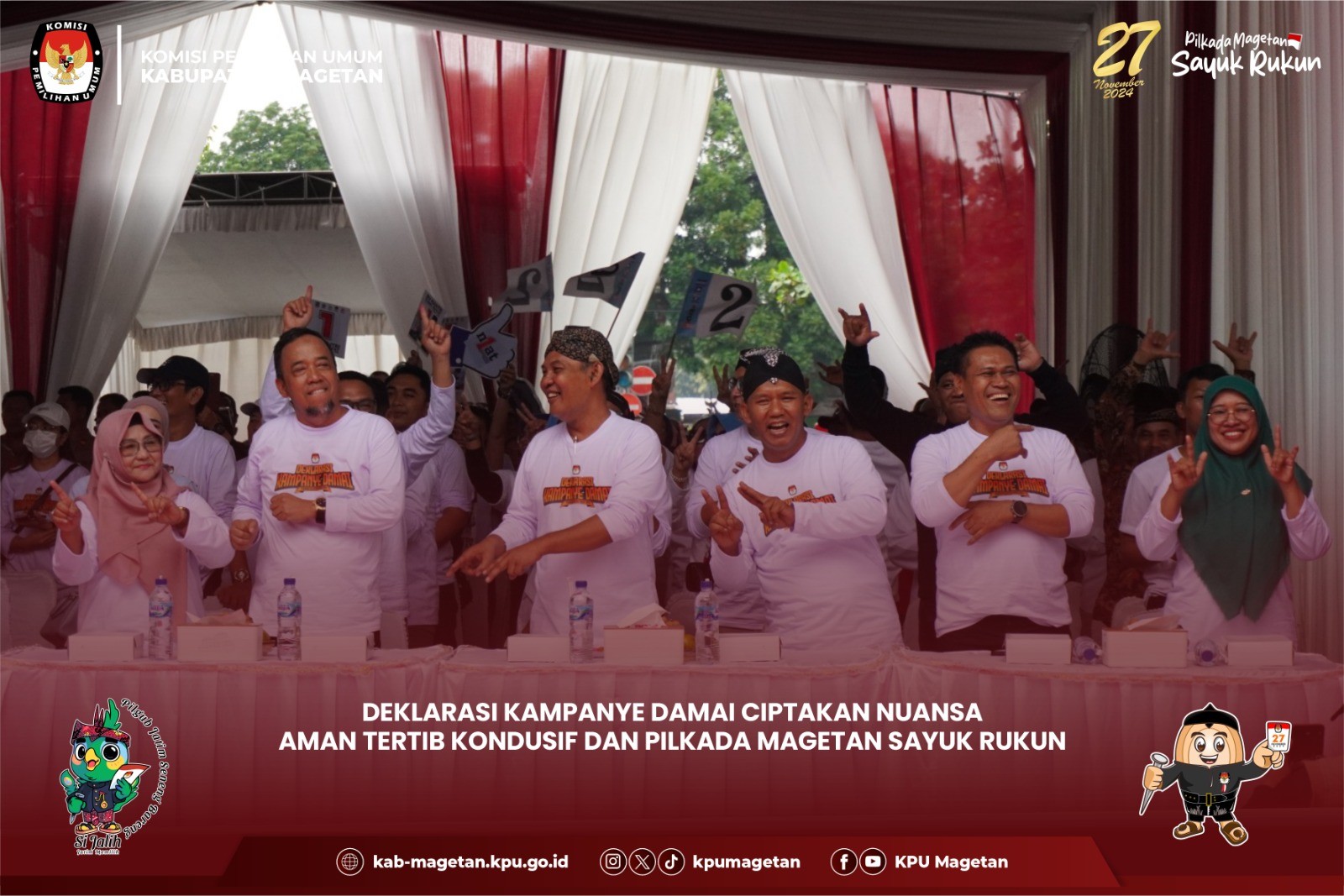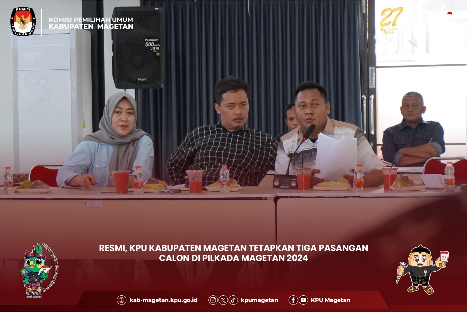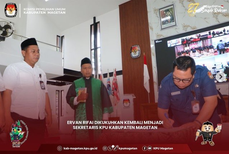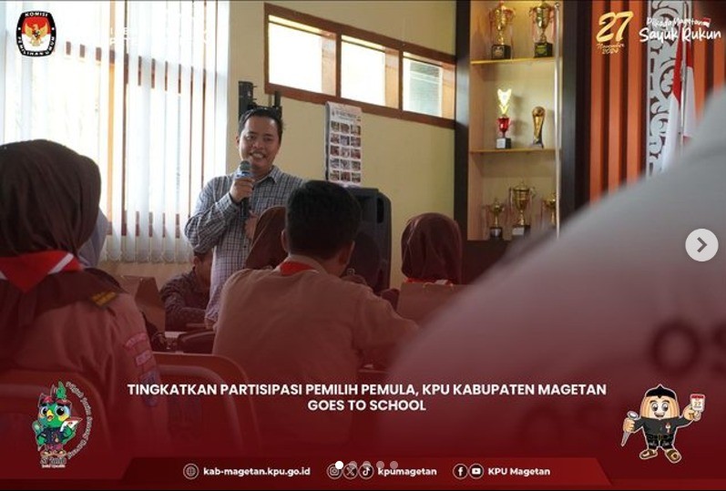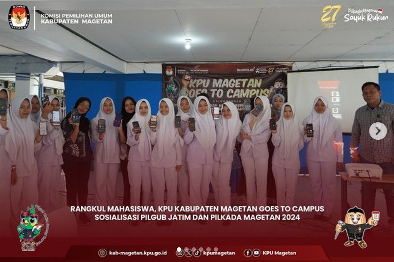 KPU Kabupaten Magetan mengadakan sosialisasi "KPU Goes To Campus" dalam rangka Pemilihan Gubernur dan Wakil Gubernur Jawa Timur serta Pemilihan Bupati dan Wakil Bupati Magetan Tahun 2024. Kegiatan ini bertempat di Kampus Politeknik Kesehatan Kemenkes Surabaya di Magetan, menghadirkan perwakilan mahasiswa dari Akademi Kebidanan, Akademi Kesehatan Lingkungan, Sekolah Tinggi Agama Islam Ma’had Aly Cokrokertopati, Universitas Dr. Nugroho, dan Unesa Magetan pada Kamis (03/10). Ketua KPU Magetan, Noviano Suyide, menyampaikan pentingnya mahasiswa sebagai pemilih yang cerdas. “Mahasiswa sebagai generasi muda masa depan bangsa, pada kalianlah harapan ini disematkan. Jadilah pemilih yang cerdas. Pastikan kita sudah terdaftar menjadi pemilih yang sah melalui cekdptonline.kpu.go.id, memahami syarat-syarat menjadi pemilih, menelusuri rekam jejak para kandidat yang menjadi peserta Pilkada, aktif mengikuti perkembangan informasi pemilu dan pilkada, serta jangan Golput,” terang pria alumni Universitas Airlangga ini. Mahasiswa Unesa Surabaya Magetan, Jurusan Administrasi Negara, Naufal Ramadhan, dalam sesi diskusi, mengutip pernyataan penyair dan penulis skenario Jerman, Berthold Brecht, “Buta yang terburuk adalah buta politik. Dia tidak mendengar, tidak berbicara, dan tidak berpartisipasi dalam peristiwa politik. Dia tidak tahu bahwa biaya hidup, harga kacang, harga ikan, harga tepung, biaya sewa, harga sepatu, dan obat, semua tergantung pada keputusan politik.” “Mahasiswa jangan sampai buta politik atau apatis terhadap politik. Momentum Pilkada ini, kita harus mengetahui siapa calonnya dan apa visi misinya,” ujarnya. “Angka pemilih muda yang tinggi berimplikasi pada peningkatan partisipasi pemuda dalam Pilkada tahun ini. Mari kita dorong bersama upaya peningkatan partisipasi pemilih di Pilkada serentak tahun ini,” pungkasnya. (sgt)