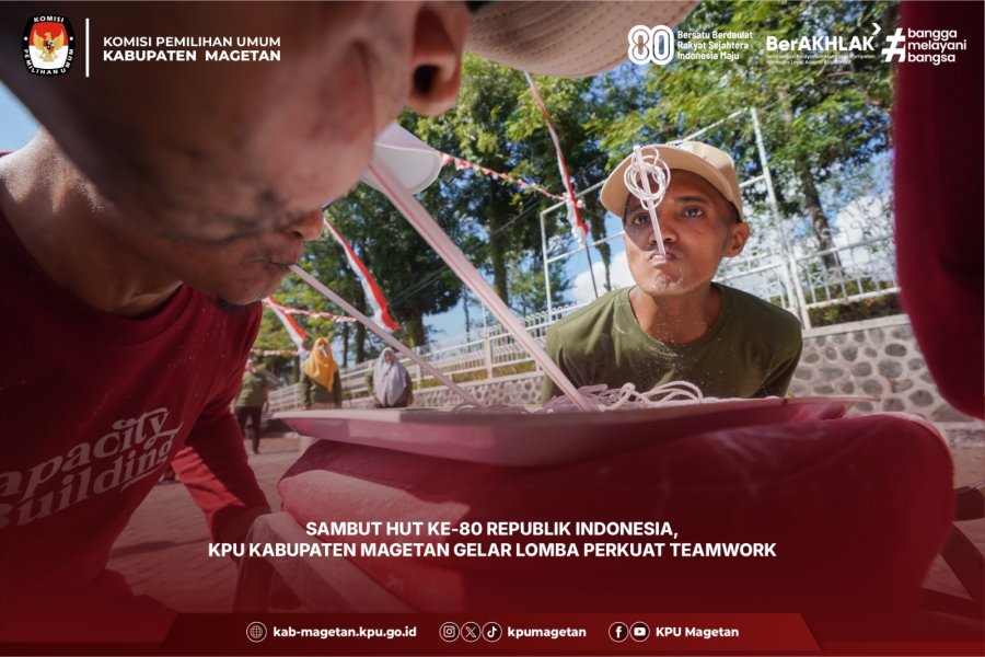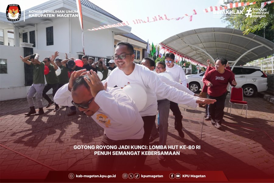 Magetan, kab-magetan.kpu.go.id - Komisi Pemilihan Umum (KPU) Kabupaten Magetan melanjutkan rangkaian kegiatan lomba dalam rangka memperingati HUT ke-80 Republik Indonesia pada hari kedua, Jumat (15/8). Suasana penuh semangat dan keceriaan tampak sejak pagi hari saat para pegawai dan staf bersiap mengikuti berbagai perlombaan yang digelar di halaman kantor KPU Magetan. Berbagai jenis lomba seperti estafet pindah kardus, jalan sambil jepit balon, dan lempar balon sambil memakai kemeja menjadi ajang unjuk kekompakan antar tim. Tidak hanya mengandalkan kekuatan fisik, perlombaan tersebut menuntut koordinasi dan kerja sama yang solid antaranggota tim. Teriakan semangat dari rekan-rekan peserta menambah meriah suasana, menciptakan atmosfer yang hangat dan penuh kebersamaan. Ketua KPU Kabupaten Magetan, Noviano Suyide menyampaikan bahwa kegiatan ini bukan sekadar ajang hiburan, tetapi juga sebagai sarana mempererat tali silaturahmi dan membangun semangat gotong royong di lingkungan kerja. “Melalui lomba ini, kami ingin menanamkan nilai kebersamaan, kekompakan, dan semangat perjuangan yang sejalan dengan semangat kemerdekaan,” ujarnya. Kegiatan yang berlangsung dua hari ini mendapat antusiasme tinggi dari seluruh jajaran KPU. Dengan semangat sportivitas dan persaudaraan, lomba HUT ke-80 RI ini menjadi momen penting dalam memperkuat solidaritas internal sekaligus mengenang perjuangan para pahlawan melalui nilai-nilai persatuan. (br)