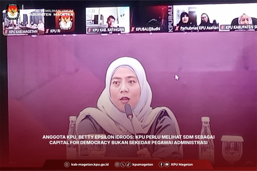 Komisi Pemilihan Umum Kabupaten Magetan (KPU Magetan) mengikuti Rapat Koordinasi Pengawasan dalam rangka Peningkatan dan Penguatan Kinerja Pengawasan di Lingkungan KPU, KPU Provinsi, dan KPU Kabupaten/Kota secara daring di Media Center KPU Magetan, Selasa (21/10). Anggota KPU RI, Iffa Rosita, dalam arahannya menyampaikan bahwa pimpinan KPU di daerah harus mampu mengasah kemampuan dalam memitigasi permasalahan. “Data yang tersaji dalam Sistem Pengendalian Intern Pemerintah (SPIP) dapat digunakan untuk keperluan memitigasi permasalahan. Unsur dalam SPIP di antaranya meliputi lingkungan pengendalian, penilaian risiko, kegiatan pengendalian, informasi dan komunikasi, serta pemantauan pengendalian intern,” terangnya. “Komponen untuk mengukur maturitas SPIP meliputi kualitas penetapan tujuan, penyelenggaraan struktur dan proses, serta pencapaian tujuan yang mencerminkan hasil dari penyelenggaraan SPIP,” imbuhnya. Kegiatan Rapat Koordinasi Pengawasan dalam rangka Peningkatan dan Penguatan Kinerja Pengawasan di Lingkungan KPU, KPU Provinsi, dan KPU Kabupaten/Kota dilanjutkan dengan pemaparan materi oleh Moch. Fahrudin, Direktur Pengawasan Bidang Politik dan Penegakan Hukum Badan Pengawasan Keuangan dan Pembangunan, serta Nanang Priyatna, Inspektorat Utama Setjen KPU. (sgt) #KPUmelayani