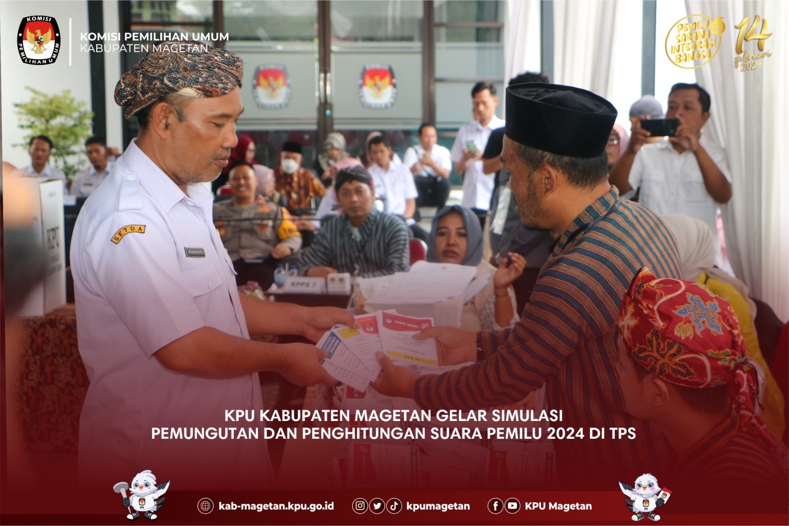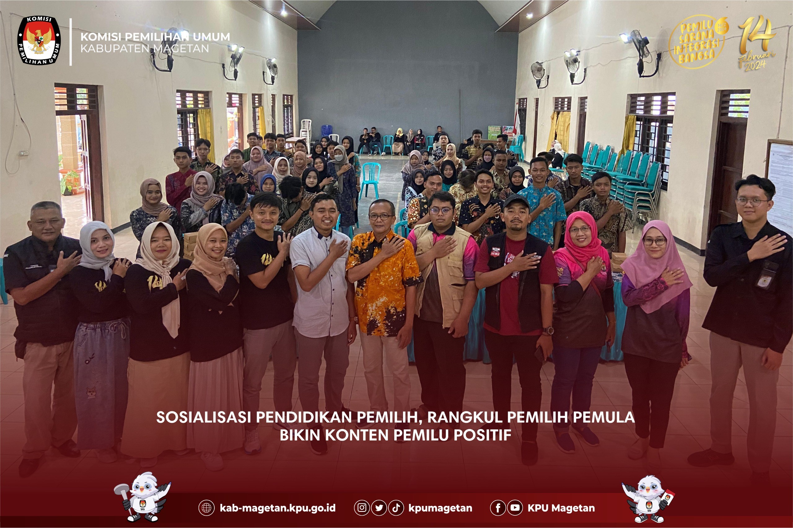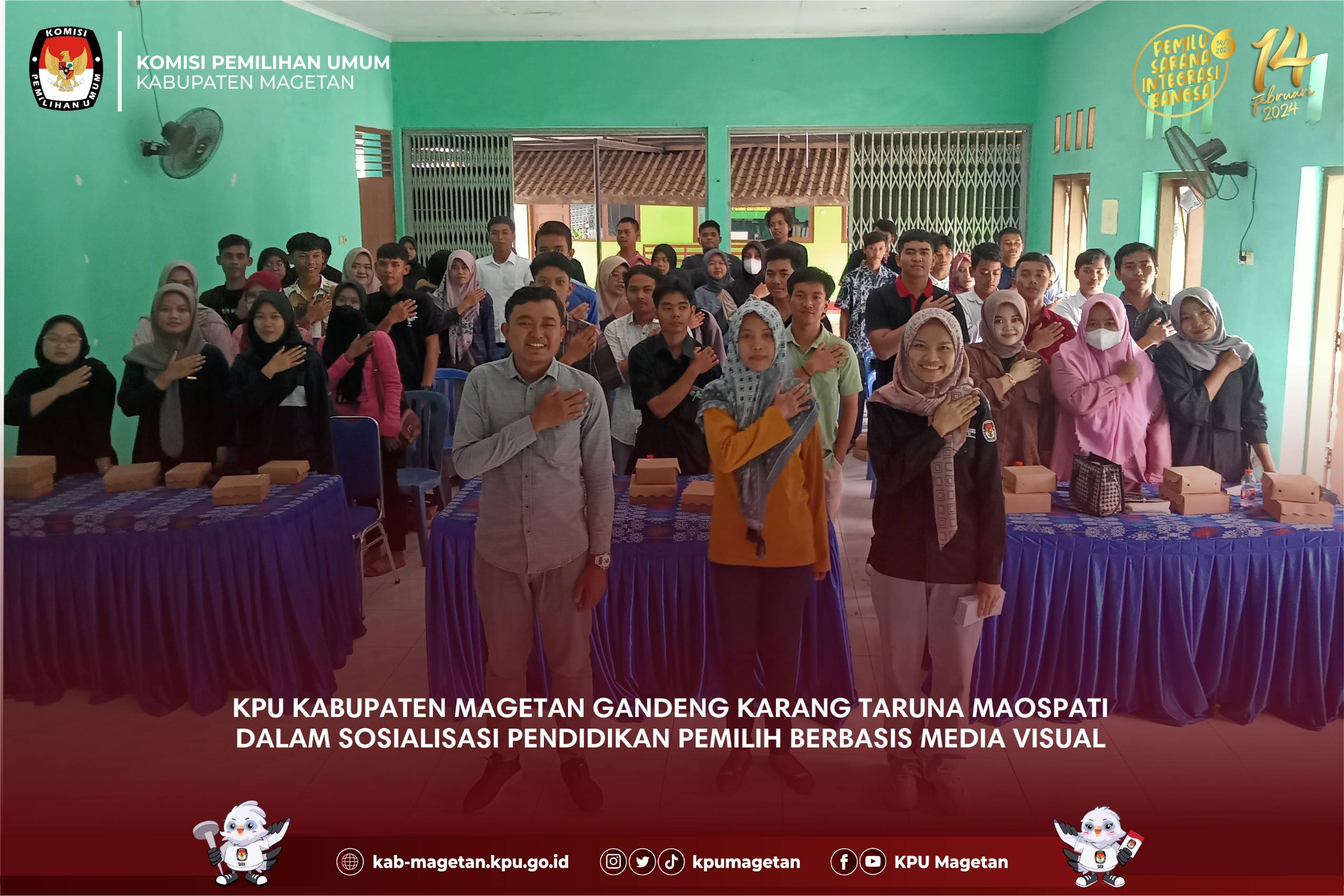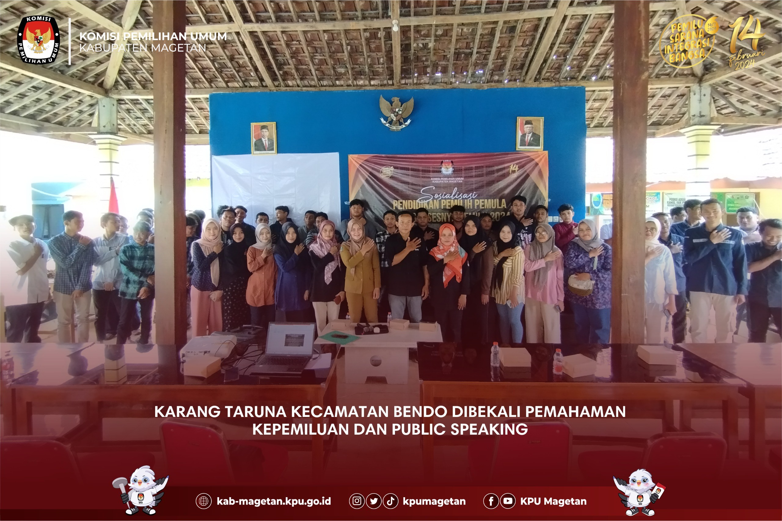 Magetan, kab-magetan.kpu.go.id - Hitungan hari Pemilu Serentak 14 Februari tiba, KPU Kabupaten Magetan terus melakukan upaya masif sosialisasi Pemilu, bersama Panitia Pemilihan Kecamatan Karangrejo, Minggu (4/2) bertempat di Balai Desa Pelem, Karangrejo dengan menghadirkan pemilih pemula untuk ikuti pelatihan pembuatan konten Pemilu positif. Ketua Panitia Pemilihan Kecamatan Karangrejo Didik berharap para pemilih pemula di Karangrejo memiliki kemampuan membuat desain konten kepemiluan. “Sosialisasi ini harapannya mampu memberikan kemampuan teknis bagi para pemilih pemula, sehingga outputnya mereka bisa menjadi influencer di hajatan Pemilu Serentak ini melalui Konten desain poster pemilu dengan pesan pesan positif diwilayah kami,Ujar Pria berkacamata ini. “Selain hal teknis terkait desain grafis, para pemilih pemula perlu peningkatan pemahaman terkait pemilu dan demokrasi, dunia media sosial begitu dekat dengan mereka maka perlu kami bekali pemahaman cara berkonten positif dalam pemilu,Imbuhnya. Ditambahkan Pemateri Sosialisasi yang juga Desain Grafis muda asal Parang Muhammad Khoiri terkait hal hal teknis pembuatan desain grafis untuk mengisi konten kepemiluan termasuk penerapan desain di Media Cetak, Banner, Konten Medsos, Design Kemasan, Design Pemasaran. ”Pesan Pemilu Positif agar lebih menarik perlu memahami tipografi yaitu seni memilih dan mengatur huruf atau teks sebagai elemen visual dalam suatu desain,Terangnya. “Tentunya Konsep mengamati serta memodifikasi merupakan metode menyertakan proses kreatif untuk mengubah objek yang hendak ditiru menjadi sesuatu yang unik,”Pungkasnya.(sgt)