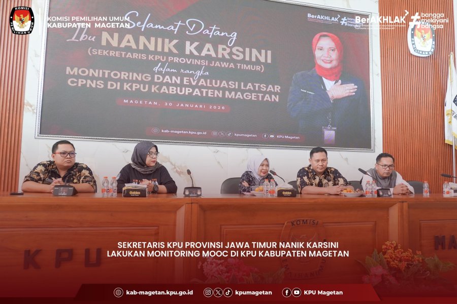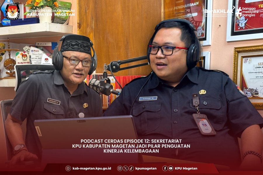 #TemanPemilih, Komisi Pemilihan Umum (KPU) Kabupaten Magetan kembali menghadirkan Podcast CERDAS (Cerita Demokrasi Santai) Episode 12 dengan tema “Peran Sekretariat KPU Kabupaten Magetan dalam Mendukung Kinerja Kelembagaan”. Podcast ini menjadi ruang edukasi publik untuk mengenalkan peran strategis sekretariat sebagai unsur pendukung utama dalam penyelenggaraan pemilu dan pilkada yang profesional dan akuntabel. Dipandu oleh Sugiarto, Staf Subbagian SDM dan Parmas KPU Kabupaten Magetan, episode ini menghadirkan Ervan Rifai, Sekretaris KPU Kabupaten Magetan, sebagai narasumber. Dalam perbincangan tersebut, Ervan menjelaskan bahwa sekretariat memiliki tugas dan fungsi penting mulai dari dukungan administratif, pengelolaan sumber daya manusia, perencanaan dan penganggaran, hingga fasilitasi logistik dan penyusunan keputusan KPU sesuai dengan ketentuan peraturan perundang-undangan. Lebih lanjut, Ervan Rifai menekankan pentingnya manajemen kerja dan soliditas tim dalam menghadapi beban kerja tinggi pada tahapan pemilu dan pilkada. Menurutnya, kunci menjaga kinerja organisasi terletak pada pembagian tugas yang proporsional, komunikasi yang baik, serta keberanian menghadapi dan menyelesaikan setiap permasalahan secara bersama-sama. “Sekretariat harus mampu memastikan seluruh kebutuhan kelembagaan terpenuhi agar pimpinan KPU dapat fokus menjalankan tugas penyelenggaraan pemilu,” ujarnya. Pada kesempatan tersebut juga disampaikan capaian KPU Kabupaten Magetan dalam Pemilu dan Pilkada sebelumnya, di antaranya peningkatan signifikan angka partisipasi pemilih serta berbagai penghargaan di tingkat provinsi dan nasional. Melalui Podcast CERDAS ini, KPU Kabupaten Magetan berharap sinergi antara sekretariat, komisioner, dan badan ad hoc terus terjaga sebagai modal kuat dalam menyongsong agenda demokrasi berikutnya, sejalan dengan komitmen KPU untuk terus hadir melayani masyarakat. (Br) #KPUmelayani