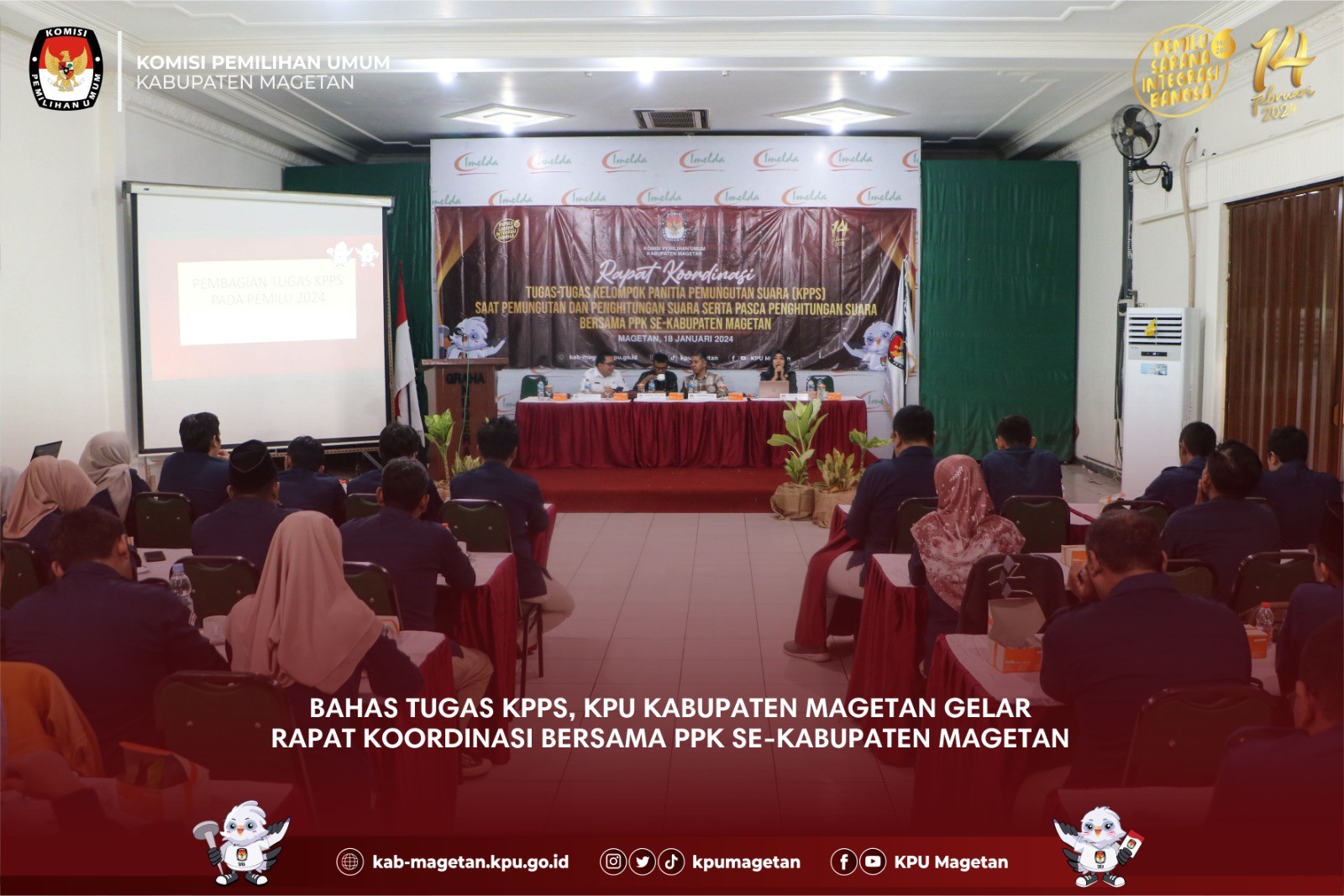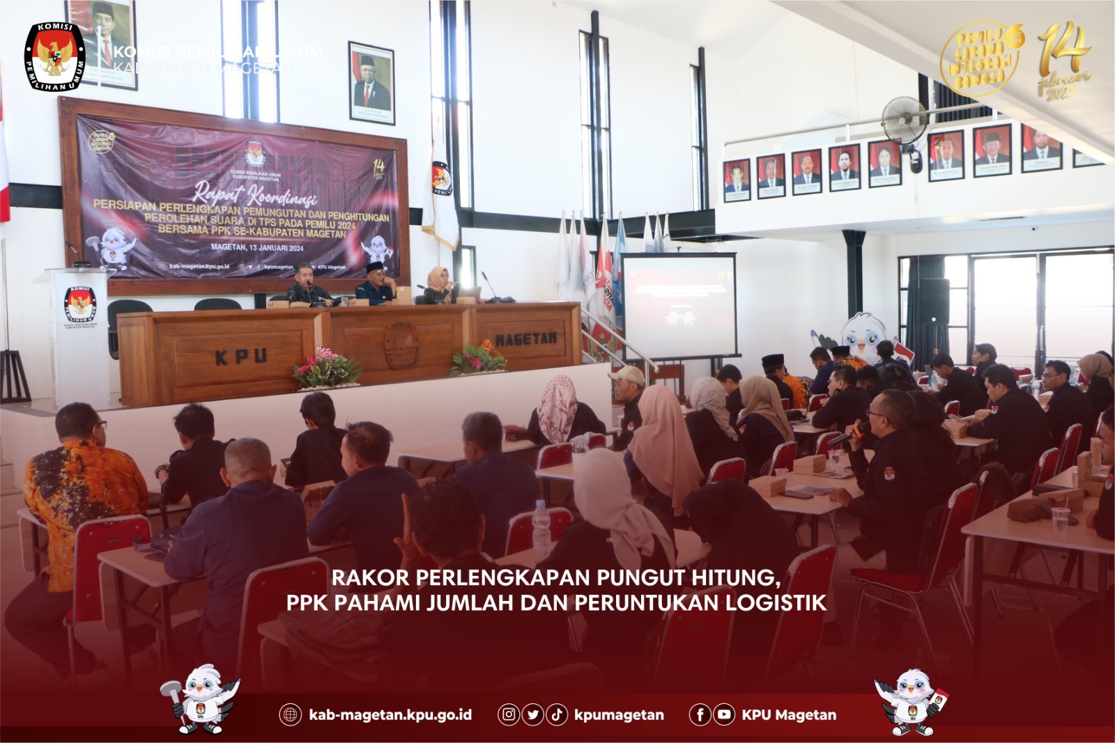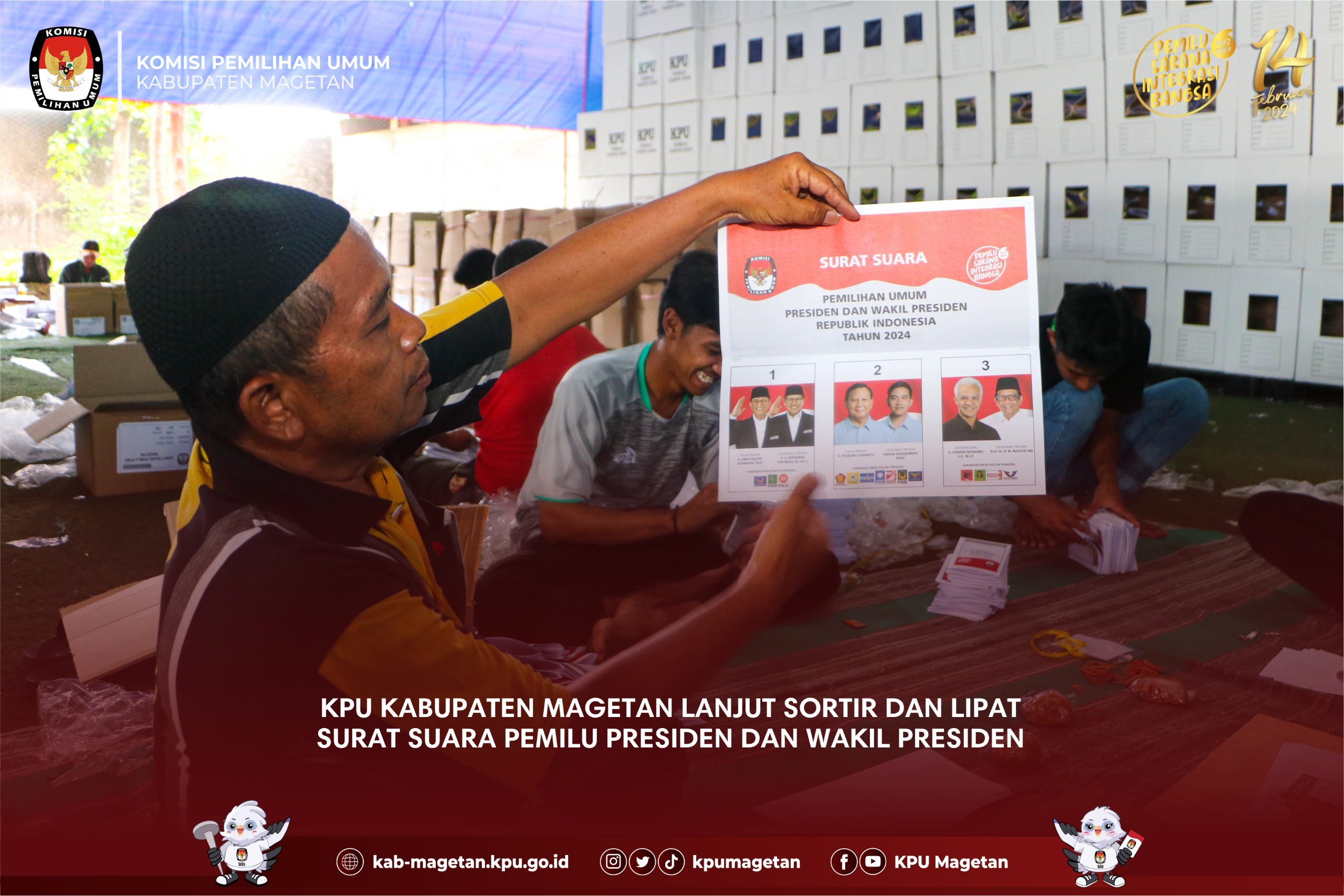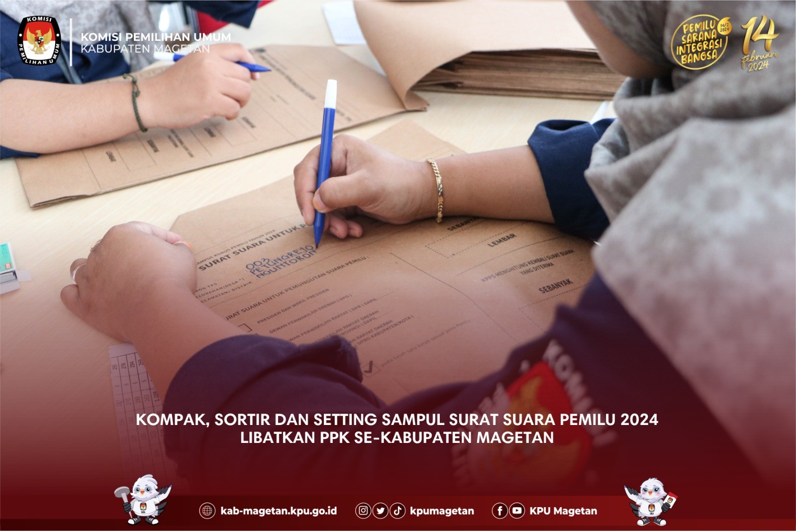 Magetan, kab-magetan.kpu.go.id - Pemilu 2024 tinggal beberapa hari lagi. KPU Kabupaten Magetan juga telah menerima berbagai macam logistik untuk Pemilu 2024. Terkini, giat sortir dan setting sampul surat suara Pemilu 2024 melibatkan PPK se-Kabupaten Magetan, Kamis (18/1). Fokus utama kegiatan ini adalah menuliskan identitas Tempat Pemungutan Suara (TPS) untuk memastikan proses Pemilu 2024 berjalan lancar. 90 PPK se-Kabupaten Magetan beserta beberapa Tenaga Pendukung PPK berkumpul di Aula Jalak Lawu KPU Kabupaten Magetan untuk melaksanakan giat ini. "Sengaja kami kumpulkan semua PPK agar dapat membantu kami di KPU Kabupaten Magetan dalam proses ini dikarenakan jumlah sampul surat suara yang mencapai ribuan ini," ungkap Kasubbagian Keuangan Umum dan Logistik KPU Kabupaten Magetan, Sundarso. Pada proses ini, PPK ditugaskan untuk menulis identitas TPS yang ada di sampul surat suara. Terdapat beberapa poin yang perlu ditulis tangan seperti nomor TPS, Kelurahan/Desa, Kecamatan/Distrik, Kabupaten/Kota, Provinsi, hingga jumlah/banyaknya lembar surat suara. Setiap anggota PPK turut serta aktif dalam menyelesaikan tugas masing-masing, menciptakan atmosfer kerja yang efisien dan produktif. Adanya koordinasi yang baik menjadi kunci keberhasilan dalam menyelesaikan tahap ini. (br)