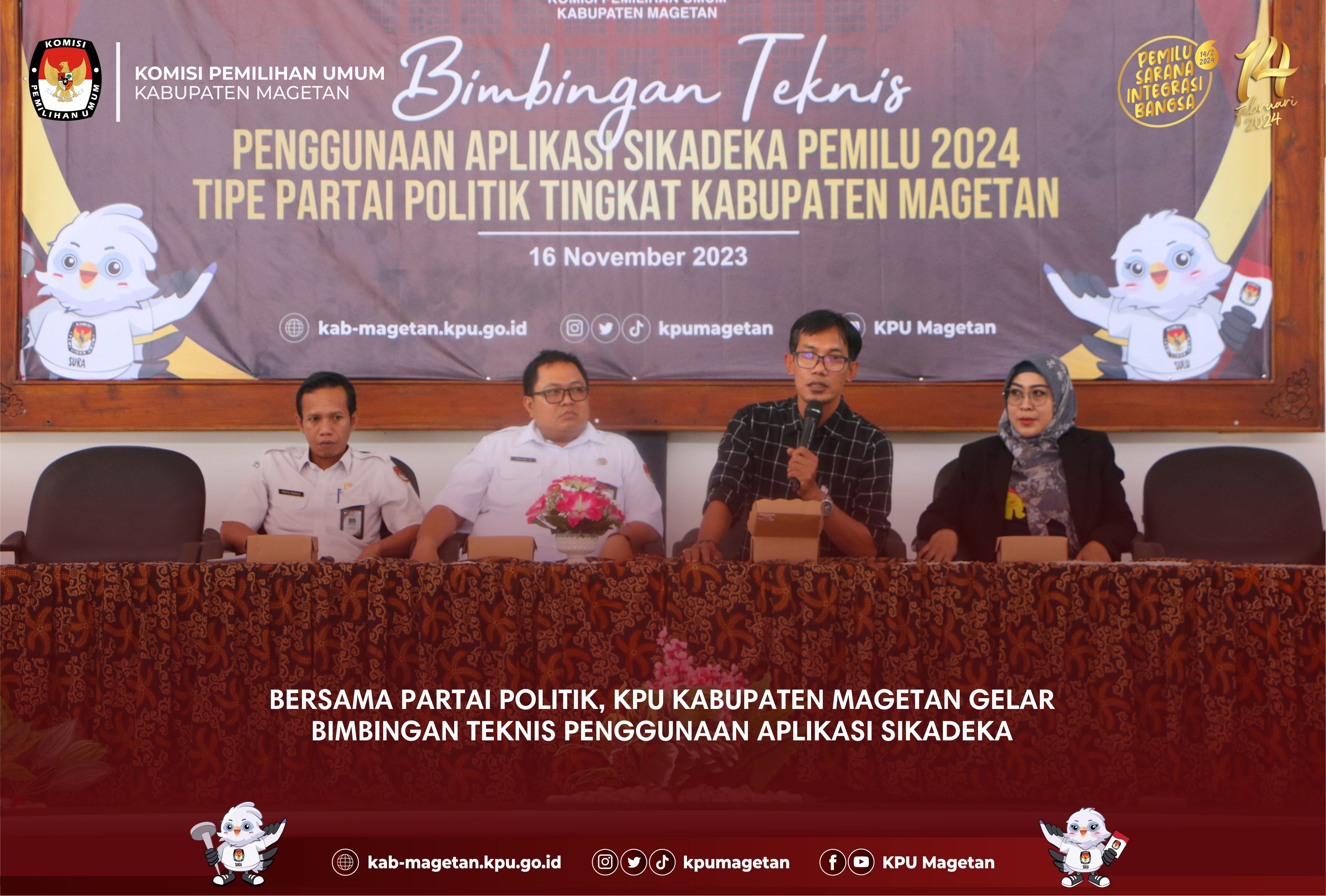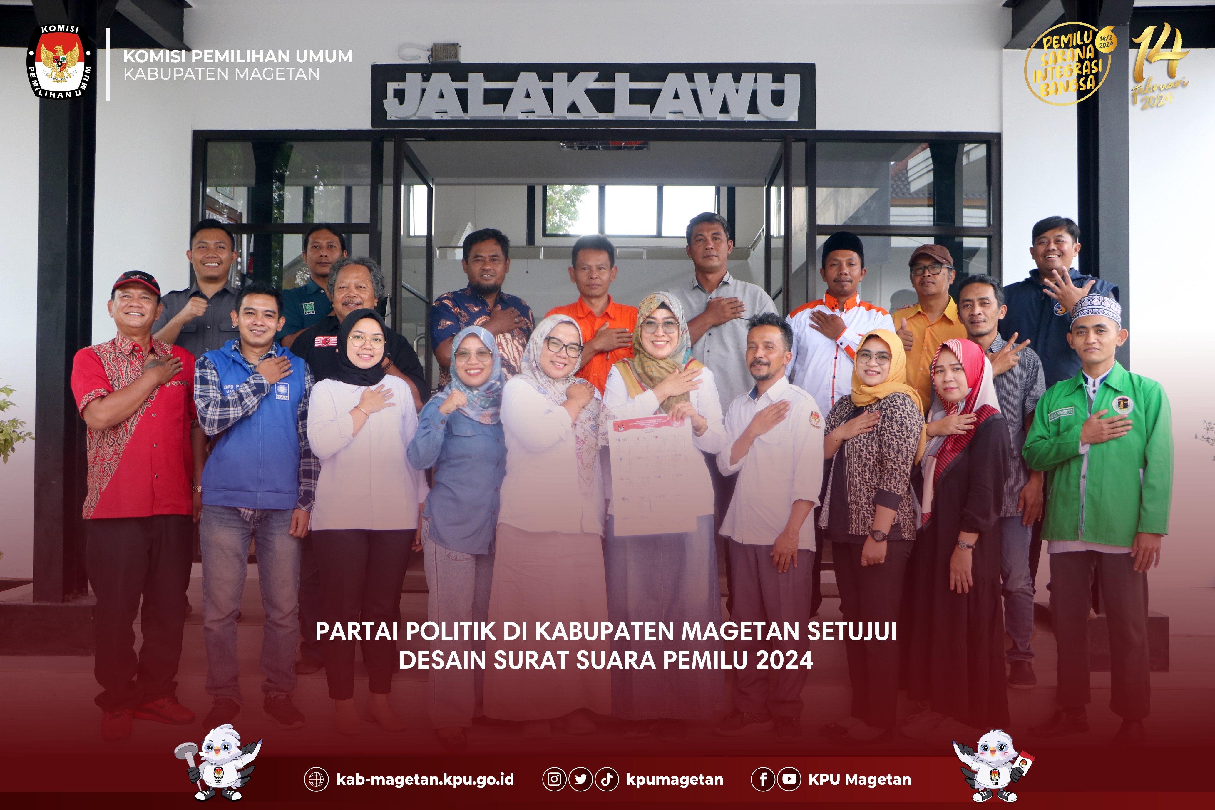kab-magetan.kpu.go.id - Pasca penetapan Daftar Calon Tetap (DCT) calon anggota DPRD Kabupaten Magetan untuk Pemilu 2024, KPU Kabupaten Magetan melaksanakan approval terkait desain surat suara Pemilu 2024, Senin (13/11). Sejumlah 15 parpol hadir dalam giat yang diselenggarakan di Aula Jalak Lawu KPU Kabupaten Magetan ini, dengan 1 parpol lain berhalangan untuk hadir. Divisi Teknis Penyelenggaraan KPU Kabupaten Magetan, Istikah menjelaskan bahwa KPU Kabupaten Magetan kembali mengundang perwakilan parpol untuk approval desain surat suara pasca penetapan DCT pada 4 November lalu. "Rancangan surat suara itu sudah di-approve oleh masing-masing parpol hari ini usai diteliti terlebih dahulu oleh perwakilan parpol yang hari ini hadir. Teman-teman parpol juga sudah memastikan kembali ksesuaian data yang ada di kami dengan yang ada di parpol. Proses berulang ini sebagai langkah untuk memastikan tidak ada kekeliruan." Ungkap Istikah. Usai diteliti dan ditandatangani oleh perwakilan parpol, giat dilanjutkan dengan penandatanganan berita acara persetujuan yang akan ditandangani oleh Komisioner KPU Kabupaten Magetan serta perwakilan parpol yang ada di Kabupaten Magetan. Istikah juga mengatakan bahwa dengan approval ini maka desain surat suara Pemilu 2024 diharapkan tidak akan ditemukan kesalahan. "Dengan approval ini, maka surat suara sudah disiapkan dengan baik, sehingga tidak ada kesalahan di hari pencoblosan." Tutupnya. (br)