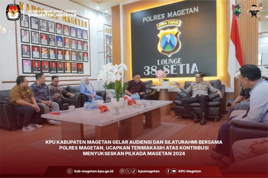 Magetan, kab-magetan.kpu.go.id - Setelah Pemilu dan Pilkada 2024 yang sukses dilaksanakan, Komisi Pemilihan Umum (KPU) Kabupaten Magetan mengadakan audiensi dan silaturahmi dengan Polres Magetan untuk memperkuat sinergi pasca-pesta demokrasi, Kamis (10/7). Kegiatan ini menjadi momen penting dalam membahas evaluasi pelaksanaan pemilu dan pilkada, serta menjalin hubungan yang lebih solid antara KPU dan Polres Magetan. Ketua KPU Kabupaten Magetan, Noviano Suyide menyampaikan rasa terima kasihnya kepada Polres Magetan atas dukungan yang luar biasa selama seluruh tahapan pemilu dan pilkada. "Kami mengucapkan terima kasih kepada Bapak Kapolres Magetan beserta jajarannya karena selama ini telah memberikan rasa aman, sehingga setiap kegiatan berjalan dengan kondusif," ujarnya. Dalam kesempatan tersebut, Noviano juga memberikan apresiasi kepada Polres Magetan atas peran serta mereka dalam menjaga keamanan dan ketertiban selama seluruh tahapan pemilu dan pilkada. "Kami juga memberikan apresiasi setinggi-tingginya kepada Bapak Kapolres Magetan beserta jajaran karena seluruh tahapan pesta demokrasi yang telah dilalui dapat berjalan aman, lancar, dan kondusif tentunya berkat kerja keras kepolisian," tambahnya. Ia juga mengungkapkan bahwa KPU Kabupaten Magetan akan memberikan buku pelaporan yang berisi informasi lengkap mengenai tahapan Pemilu 2024, Pilkada 2024, serta Pemungutan Suara Ulang (PSU) Pilkada 2024 yang akan dilaksanakan di Kabupaten Magetan. Kapolres Magetan, AKBP Raden Erik Bangun Prakasa, S.H., S.I.K., M.M., dalam sambutannya mengungkapkan kebanggaan atas sinergitas yang telah terjalin selama ini. "Kami mengucapkan terima kasih atas kunjungan KPU Kabupaten Magetan ke Polres Magetan. Kami juga mengapresiasi kerjasama yang sangat baik dalam menyelenggarakan pesta demokrasi di Kabupaten Magetan, mulai dari Pemilu hingga PSU Pilkada," ujar Kapolres. Ia menegaskan bahwa Polres Magetan akan terus berkomitmen untuk menjaga keamanan dan ketertiban di wilayah hukum Polres Magetan serta mendukung kegiatan demokrasi yang akan datang. Sementara itu, Nanik Yasiroh, Koordinator Divisi Perencanaan Data dan Informasi KPU Kabupaten Magetan, juga menyampaikan pentingnya pemutakhiran data pemilih untuk memastikan keberlanjutan proses demokrasi yang baik di masa depan. "Kami diinstruksikan oleh KPU RI untuk memetakan purnawirawan Polri setiap tiga bulan sekali. Ini untuk memastikan mereka yang berhak memilih pada event demokrasi berikutnya terdaftar dengan benar," jelas Nanik. Ia menambahkan bahwa pemutakhiran data pemilih menjadi langkah penting dalam menentukan Daftar Pemilih Tetap (DPT) yang akurat untuk Pemilu dan Pilkada yang akan datang. (br)