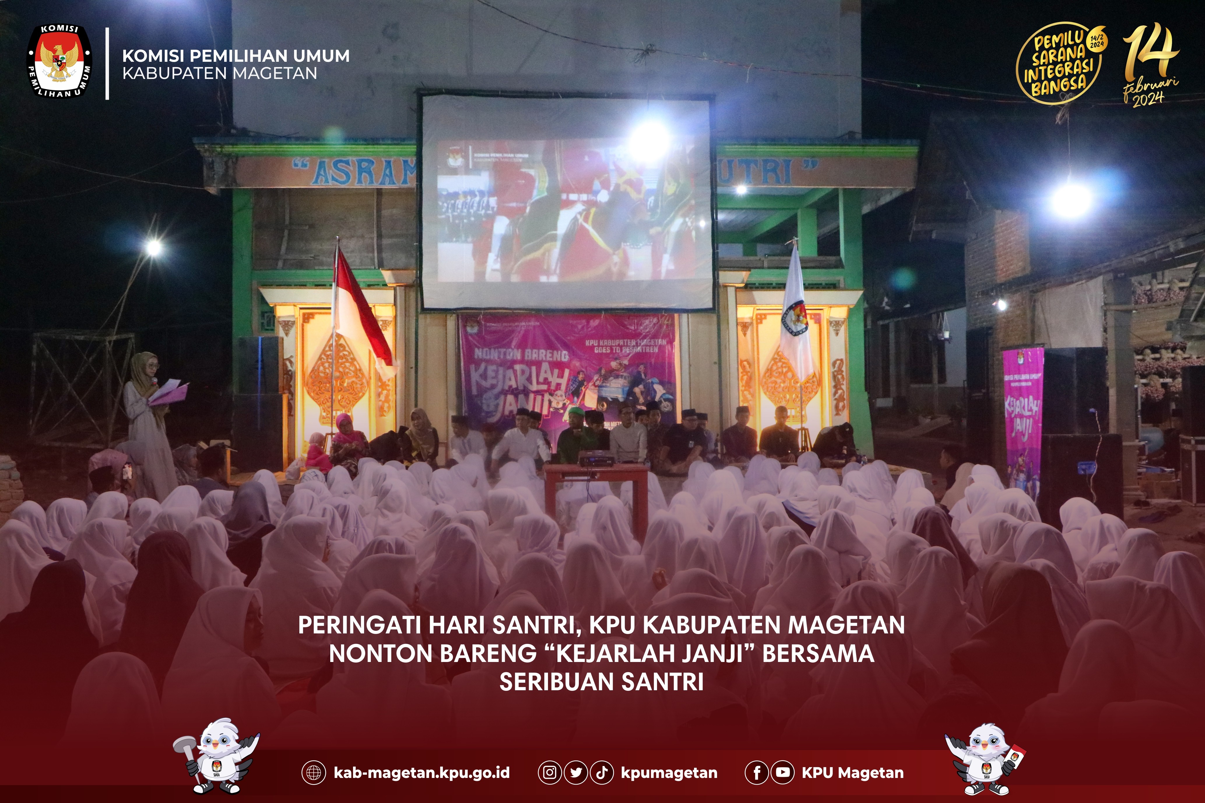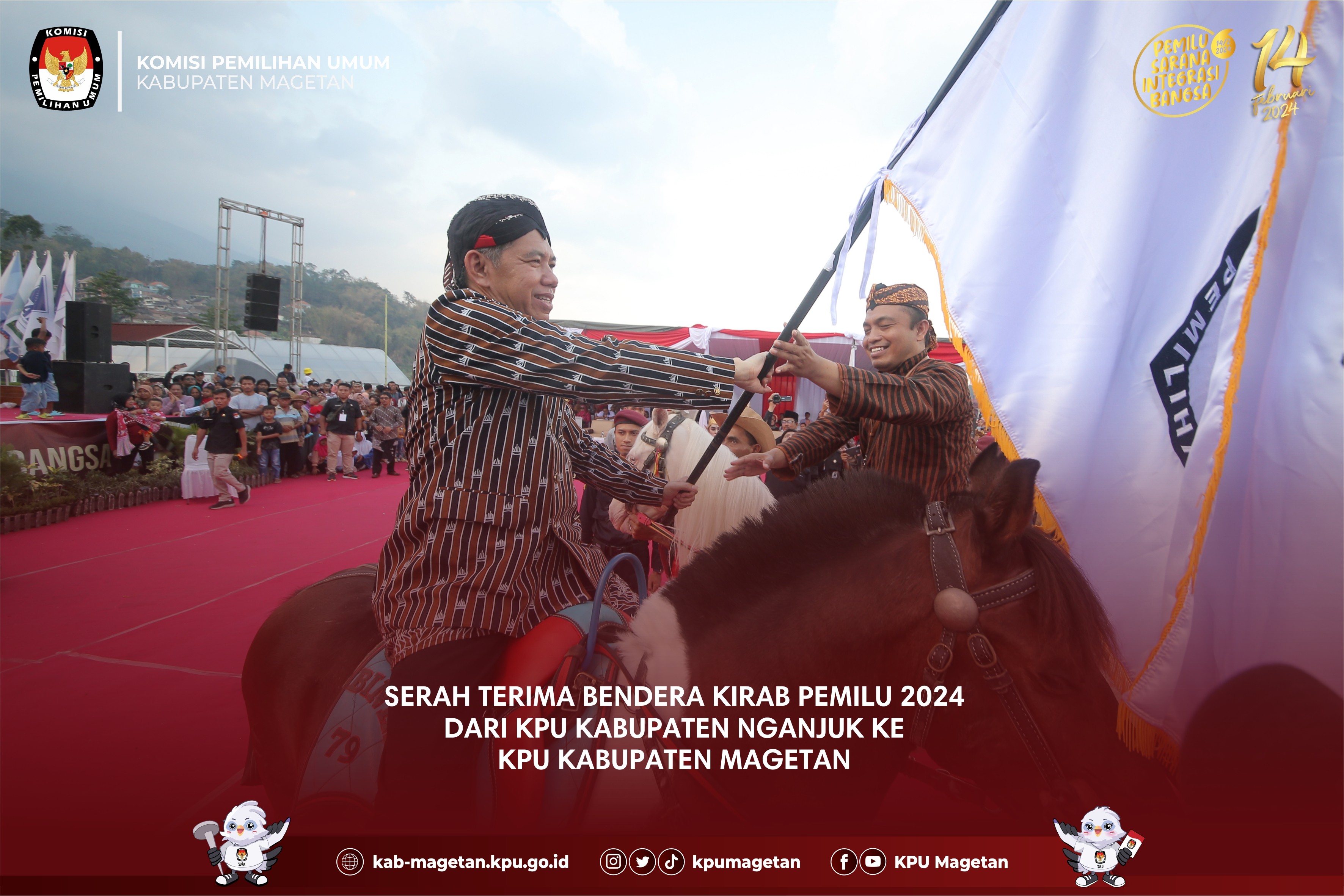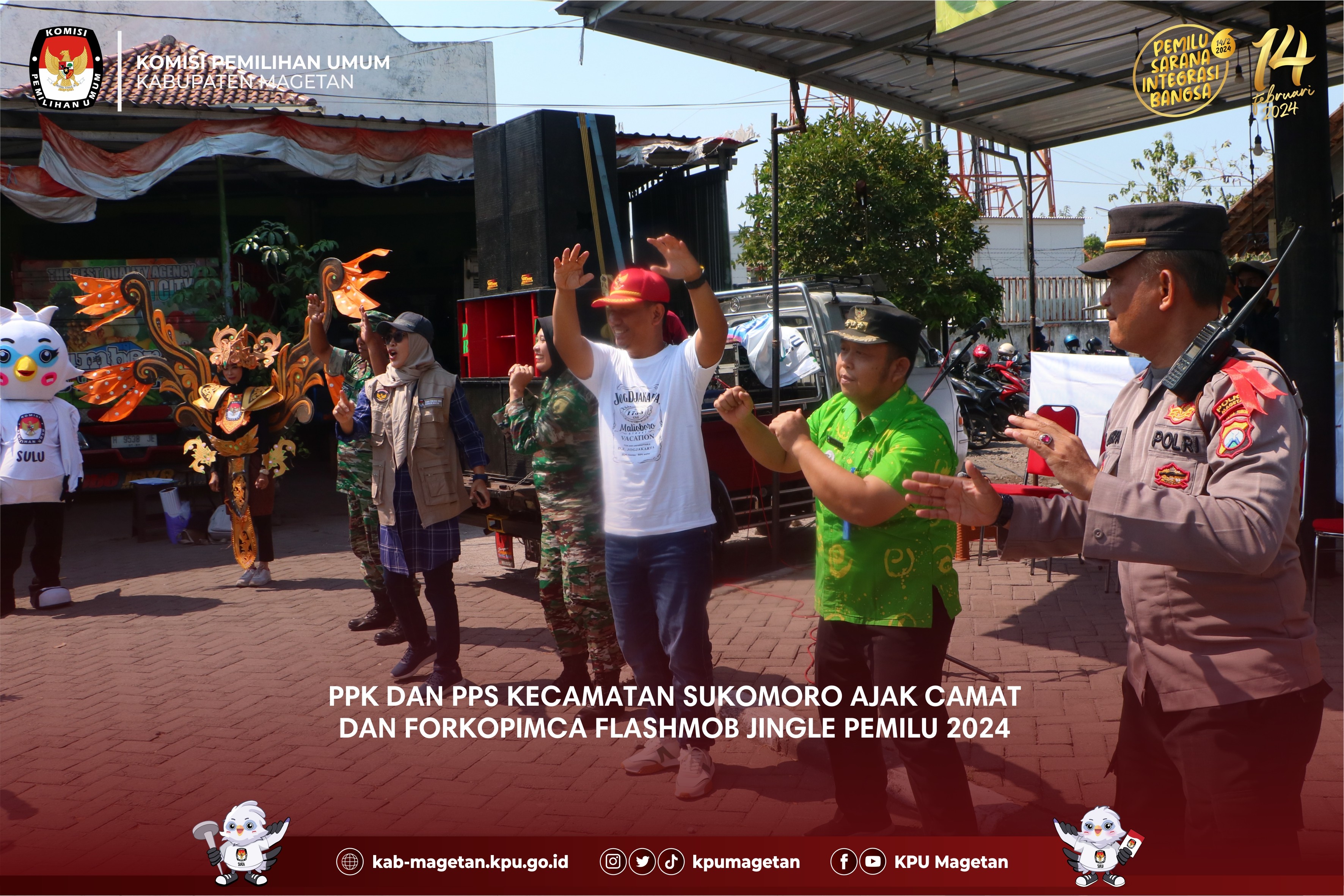 kab-magetan.kpu.go.id - Kecamatan Ngariboyo menjadi Kecamatan pertama dalam Kirab Pemilu 2024 di Kabupaten Magetan hari ketiga, Jumat (27/10). Seluruh PPK dan PPS serta Sekretariat di Kecamatam Ngariboyo berkumpul serentak di depan Pendopo Kecamatan Ngariboyo untuk melaksanakan apel pagi terlebih dahulu. Usai apel, rombongan Kirab diarak menuju Pasar Ngariboyo yang terletak tak jauh dari Kantor Kecamatan. Dalam perjalanan menuju Pasar Ngariboyo, nampak puluhan pelajar dari Taman Kanak-Kanak hingga Sekolah Dasar antusias melihat arak-arakan Kirab. Hal ini dikarenakan adanya maskot Pemilu 2024 yakni Sura dan Sulu. Selain itu PPK dan PPS Kecamatan Ngariboyo yang juga menghadirkan marching band juga cukup mendapatkan atensi masyarakat setempat. Usai sampai di Pasar Ngariboyo, PPK dan PPS langsung berpencar dan memberikan pamflet sosialisasi kepemiluan serta kalender kepada penjual dan pembeli serta pengendara yang tengah berhenti di lampu merah. Tak lupa, mereka juga mengajak untuk datang ke TPS pada Pemilu 2024 yang akan dilaksanakan pada 14 Februari 2024. (br)