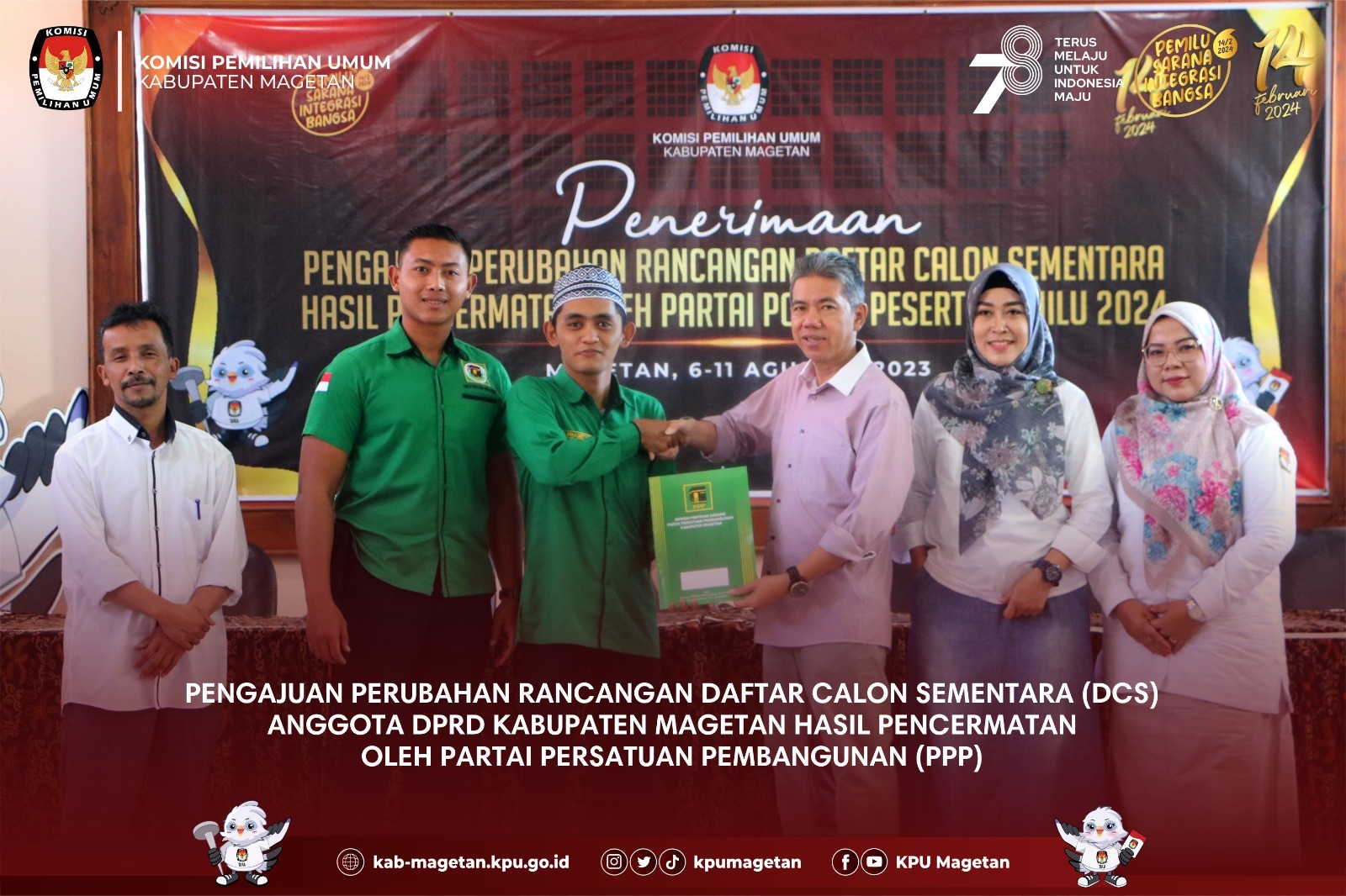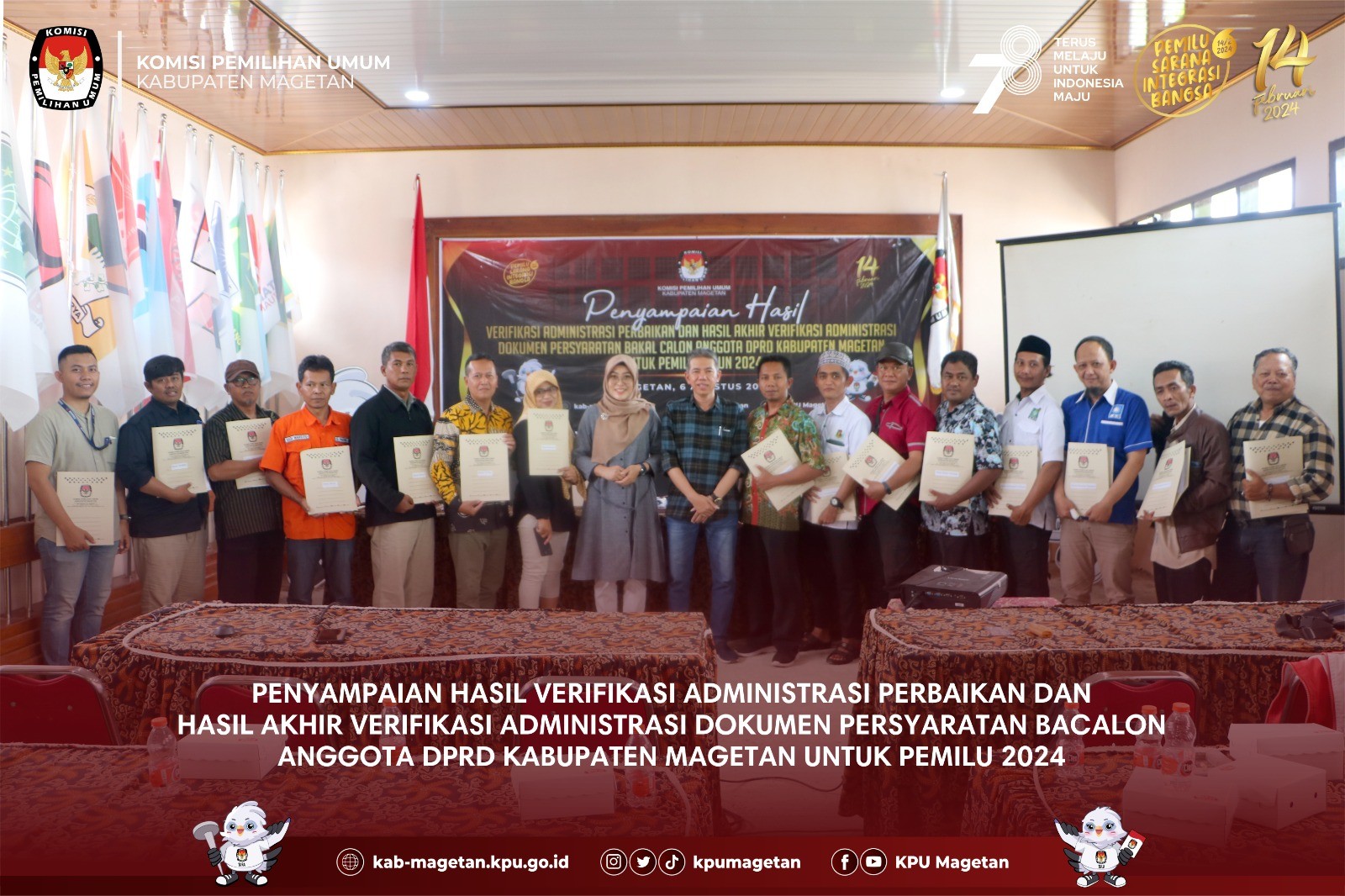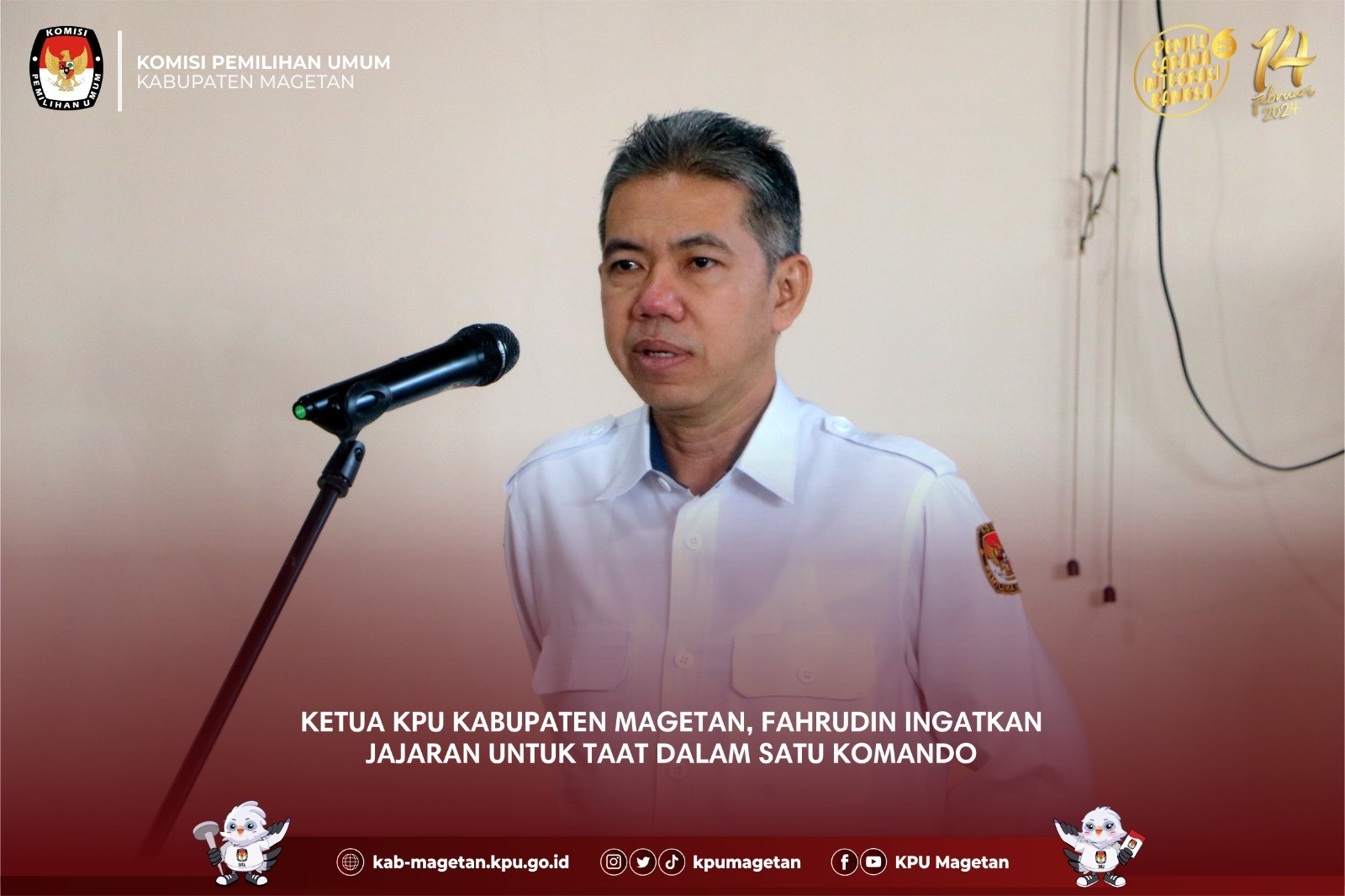 kab-magetan.kpu.go.id - KPU Kabupaten Magetan melaksanakan apel pagi rutin yang dilaksanakan di Aula KPU Kabupaten Magetan, Senin (7/8). Divisi Perencanaan Data dan Informasi KPU Kabupaten Magetan, Nanik Yasiroh hadir sebagai pembina apel kali ini. Dalam amanatnya, Nanik Yasiroh memberikan update terkait tahapan Pemilu 2024 yang tengah berjalan maupun sudah berjalan. "Kemarin kita sudah melaksanakan penyampaian hasil verifikasi administrasi perbaikan dokumen bacalon anggota DPRD Kabupaten Magetan dan kini kita juga mulai melayani masyarakat yang hendak pindah memilih." Ungkapnya. Untuk itu, Nanik Yasiroh meminta sinergitas antar Divisi dalam memberikan pelayanan terbaik dalam melayani pindah memilih. "Saya harap teman-teman sekretariat dapat memberikan pelayanan terbaik apabila terdapat masyarakat yang datang ke KPU Kabupaten Magetan dan hendak mengajukan pindah memilih. Saya juga meminta agar teman-teman dapat mensosialisasikan terkait pindah memilih ini." Tutupnya. Adapun apel pagi kali ini diikuti oleh seluruh jajaran sekretariat KPU Kabupaten Magetan dan dipimpin oleh Kasubbag Keuangan Umu dan Logistik KPU Kabupaten Magetan, Sundarso. (br)