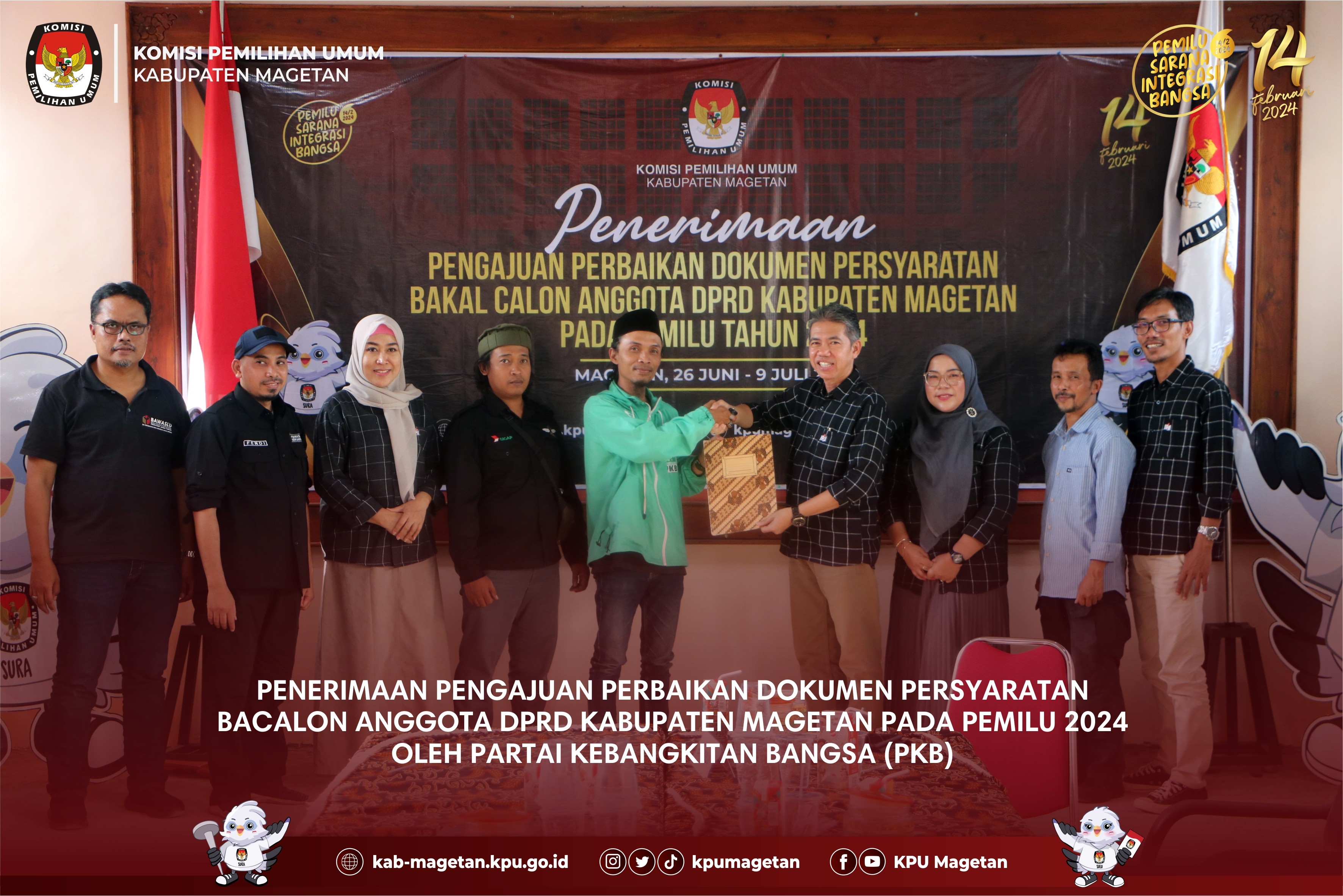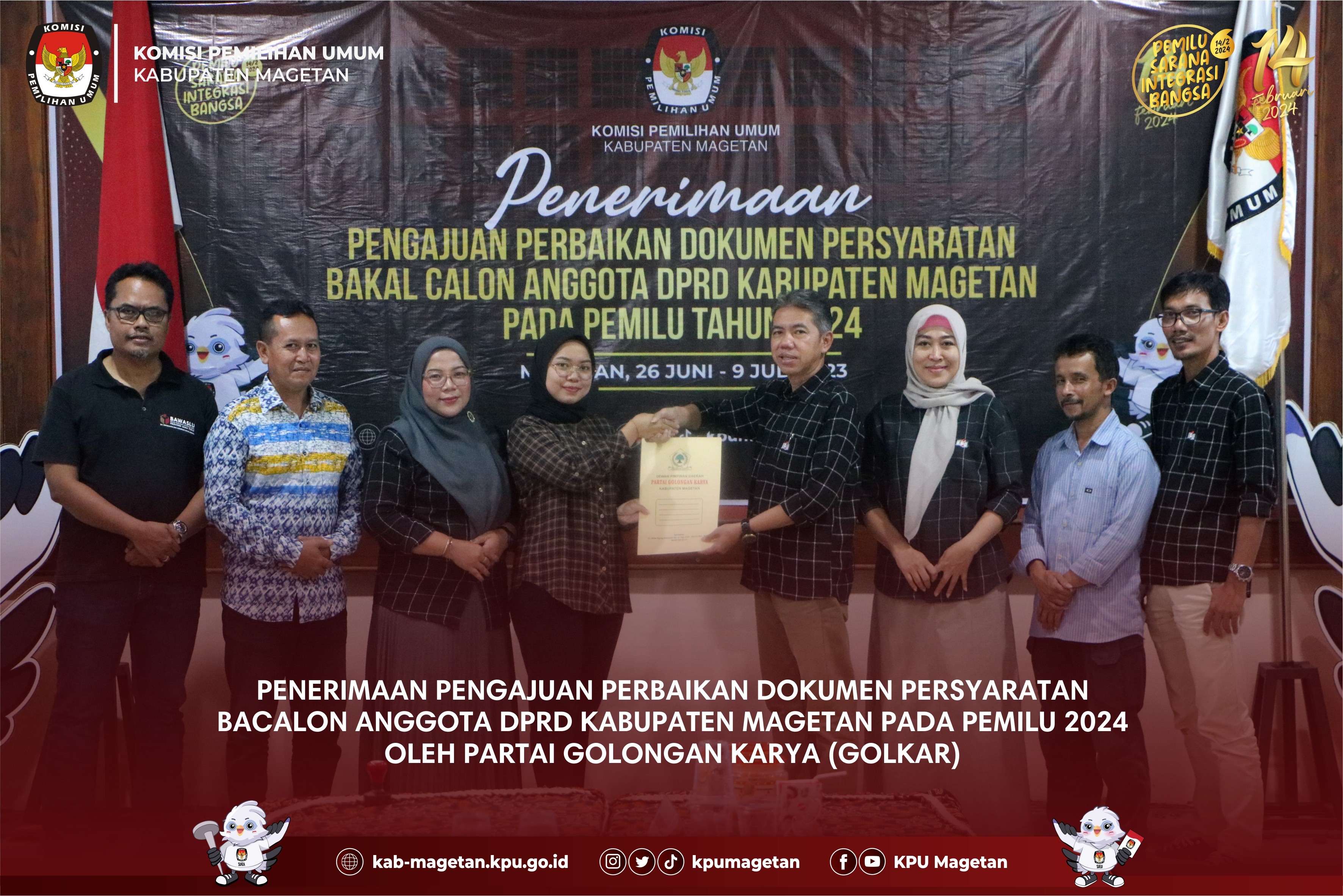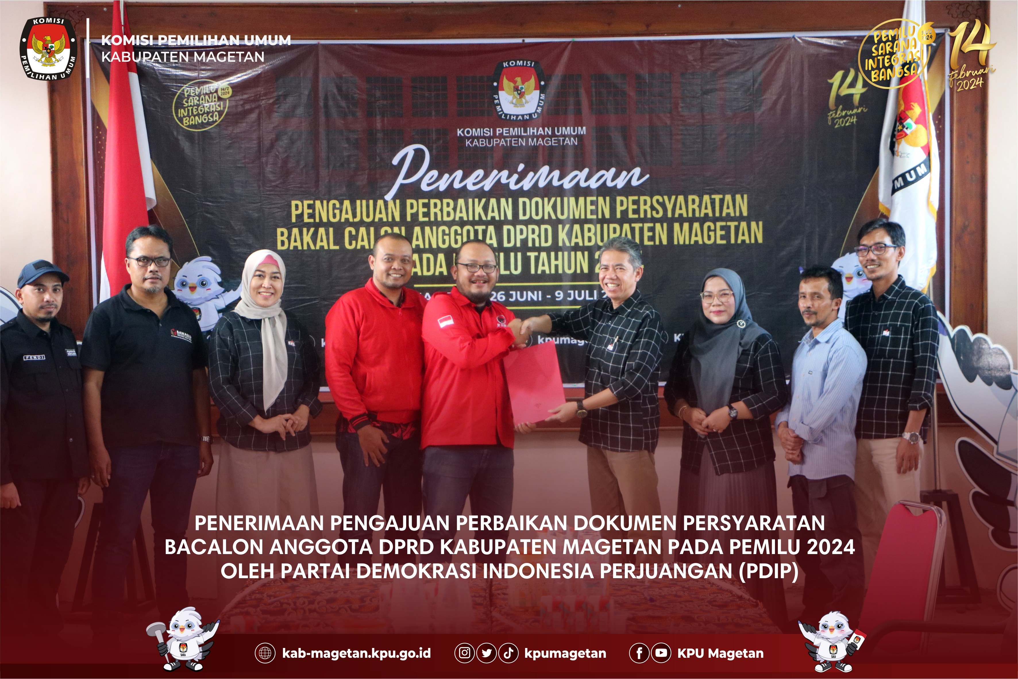 kab-magetan.kpu.go.id - KPU Kabupaten Magetan menerima pengajuan perbaikan dokumen persyaratan bacalon anggota DPRD Kabupaten Magetan pada Pemilu 2024 oleh Partai Buruh, Minggu (9/7). Kedatangan Partai Buruh Magetan kali ini dipimpin langsung oleh Exco Partai Buruh Magetan, Sulistyono. "Adapun dokumen persyaratan yang masih memerlukan perbaikan sudah selesai kami perbaiki dan lengkapi dan selanjutnya pada hari ini dapat kami ajukan kepada KPU Kabupaten Magetan." Ungkap Sulistyono. Selanjutnya, berkas dokumen perbaikan diperiksa kelengkapannya oleh admin beserta operator SILON KPU Kabupaten Magetan. Ketua KPU Kabupaten Magetan, Fahrudin menuturkan bahwa KPU Kabupaten Magetan akan segera menindaklanjuti pasca penyerahan ini. "Setelah penyerahan dokumen perbaikan telah selesai dilaksanakan, kami akan melakukan verifikasi administrasi dokumen perbaikan mulai 10 Juli - 6 Agustus mendatang" Jelasnya. Pada akhir prosesi penyerahan, diserahkan berita acara kepada Partai Buruh Magetan oleh Ketua KPU Kabupaten Magetan dan didampingi oleh Anggota KPU Kabupaten Magetan beserta Bawaslu Magetan. (br)