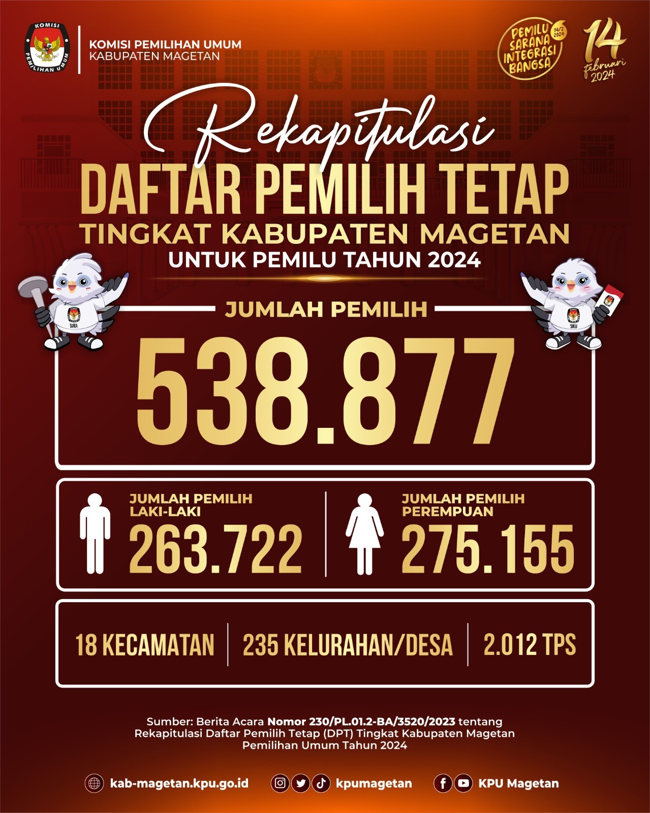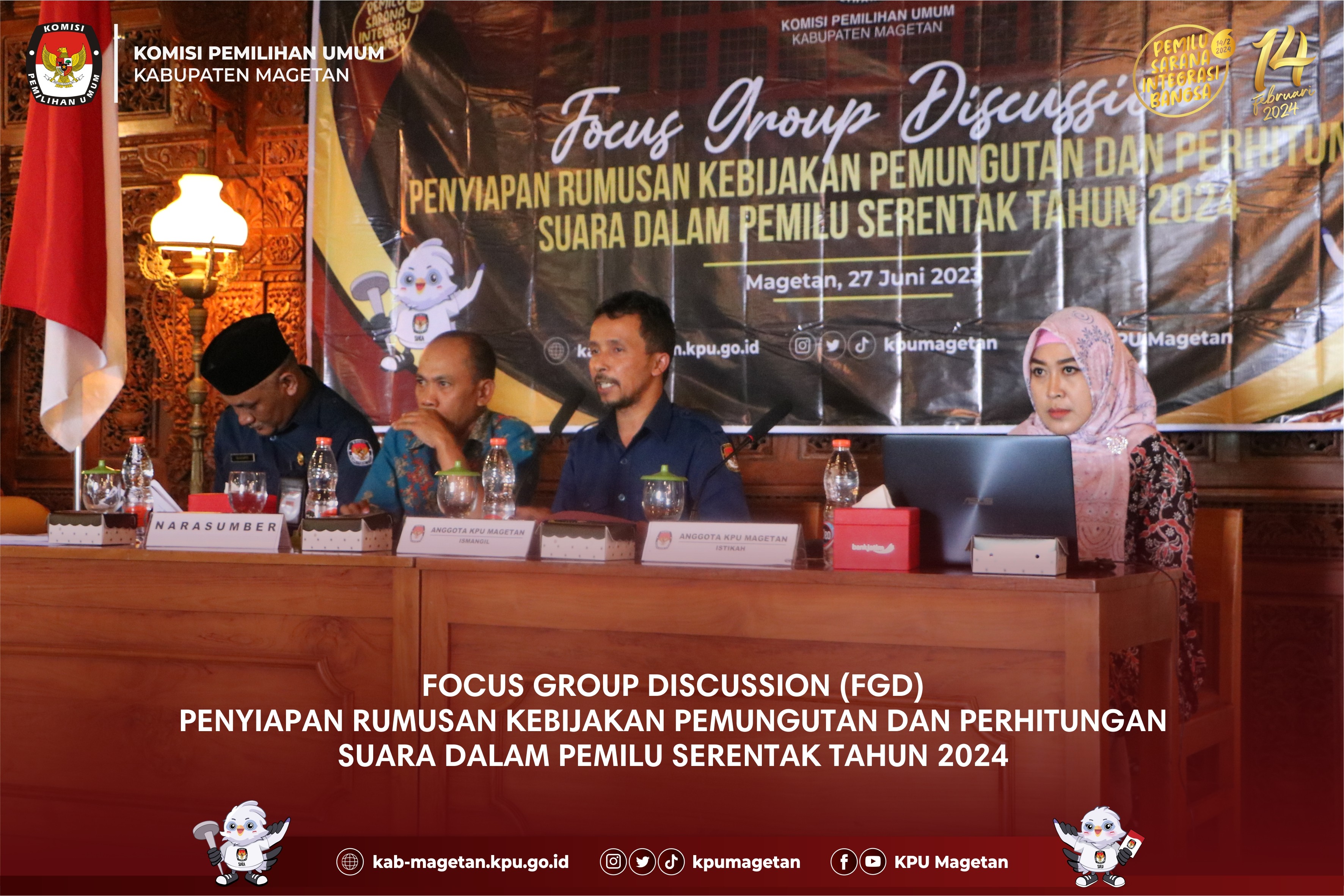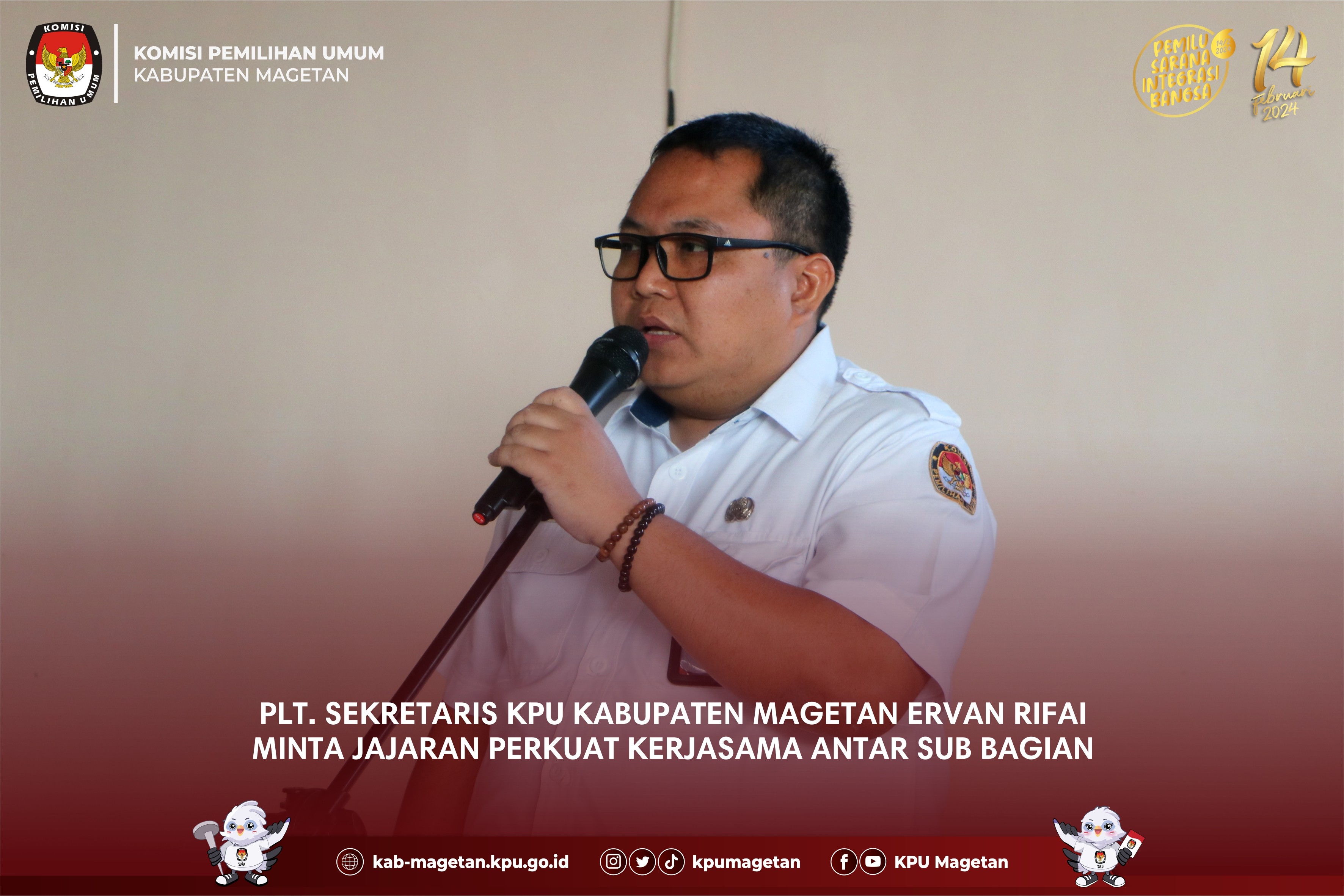 kab-magetan.kpu.go.id - KPU Kabupaten Magetan kembali melaksanakan apel pagi rutin, Senin (3/7) bertempat di Aula KPU Kabupaten Magetan. Pada apel pagi hari ini, Pelaksana Tugas (Plt.) KPU Kabupaten Magetan, Ervan Rifai hadir sebagai pembina apel. Dalam amanatnya memberikan beberapa pesan kepada jajaran KPU Kabupaten Magetan. "Bagi teman-teman ASN, saya harap untuk segera menyelesaikan laporan SKP karena hari ini adalah hari terakhir pelaporan." Ungkapnya. Lebih lanjut, ia berpesan kepada staf PPNPN untuk meningkatkan kinerja sesuai dengan tupoksi masing-masing. "Semua hal yang menjadi tanggung jawab dari teman-teman PPNPN saya harapkan agar dilaksanakan dengan baik, apabila ada yang dirasa masih kurang mohon untuk ditingkatkan segera." Ervan Rifai pada apel pagi ini juga mengungkapkan pentingnya penguatan kerjasama antar sub bagian. "Saya minta kerjasama antara sub bagian terlebih setelah penetapan DPT beberapa waktu yang lalu, kita akan tetap melayani pemutakhiran daftar pemilih khususnya untuk daftar pemilih tetap tambahan yang mana nantinya kita juga akan membuka posko di Temboro dan ini membutuhkan kontribusi dari seluruh jajaran KPU Kabupaten Magetan." Tutupnya. Adapun apel pagi hari ini dihadiri oleh seluruh jajaran KPU Kabupaten Magetan dan dipimpin oleh staf Sub Bagian Hukum, Tjetjep Sudaryanto. (br)