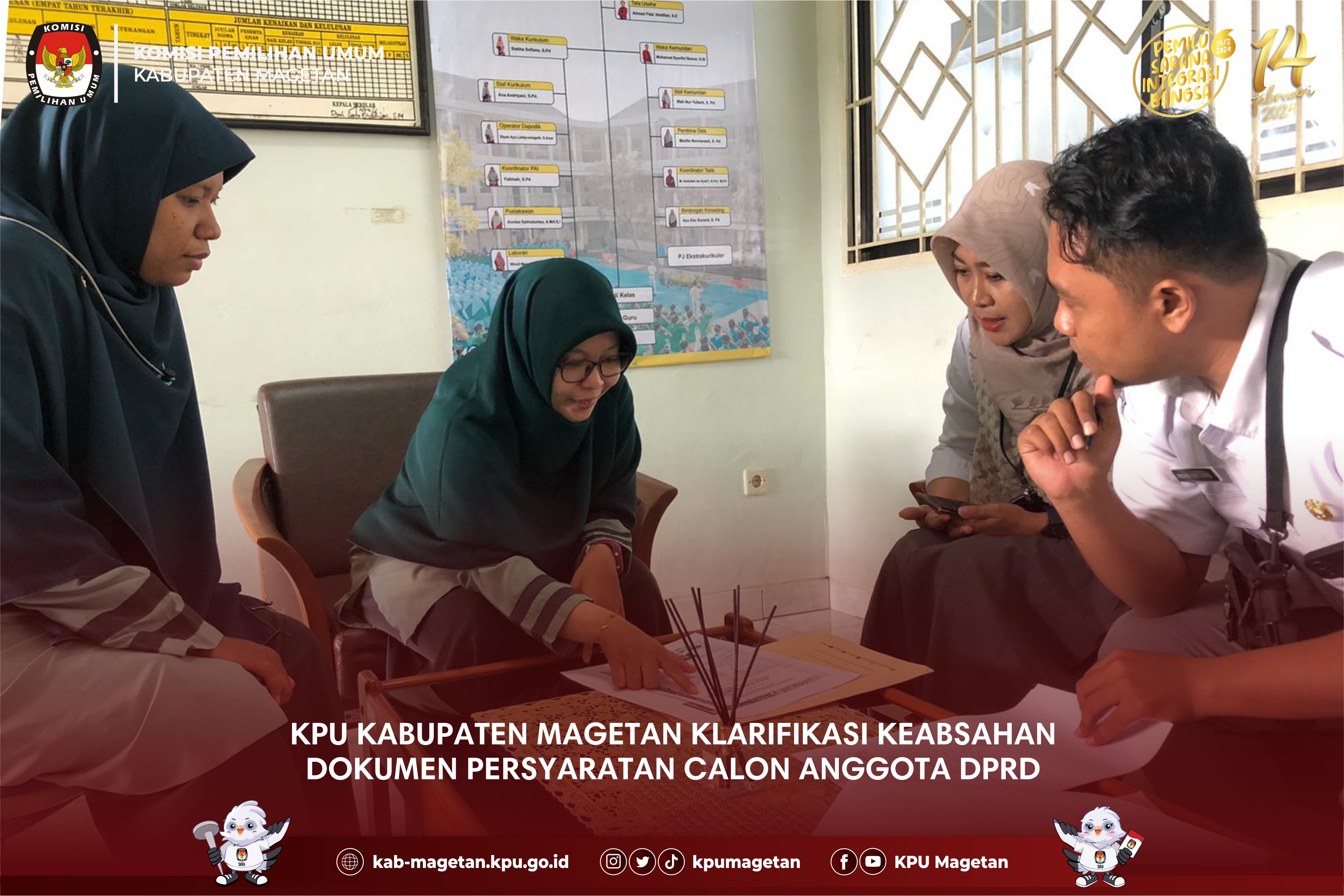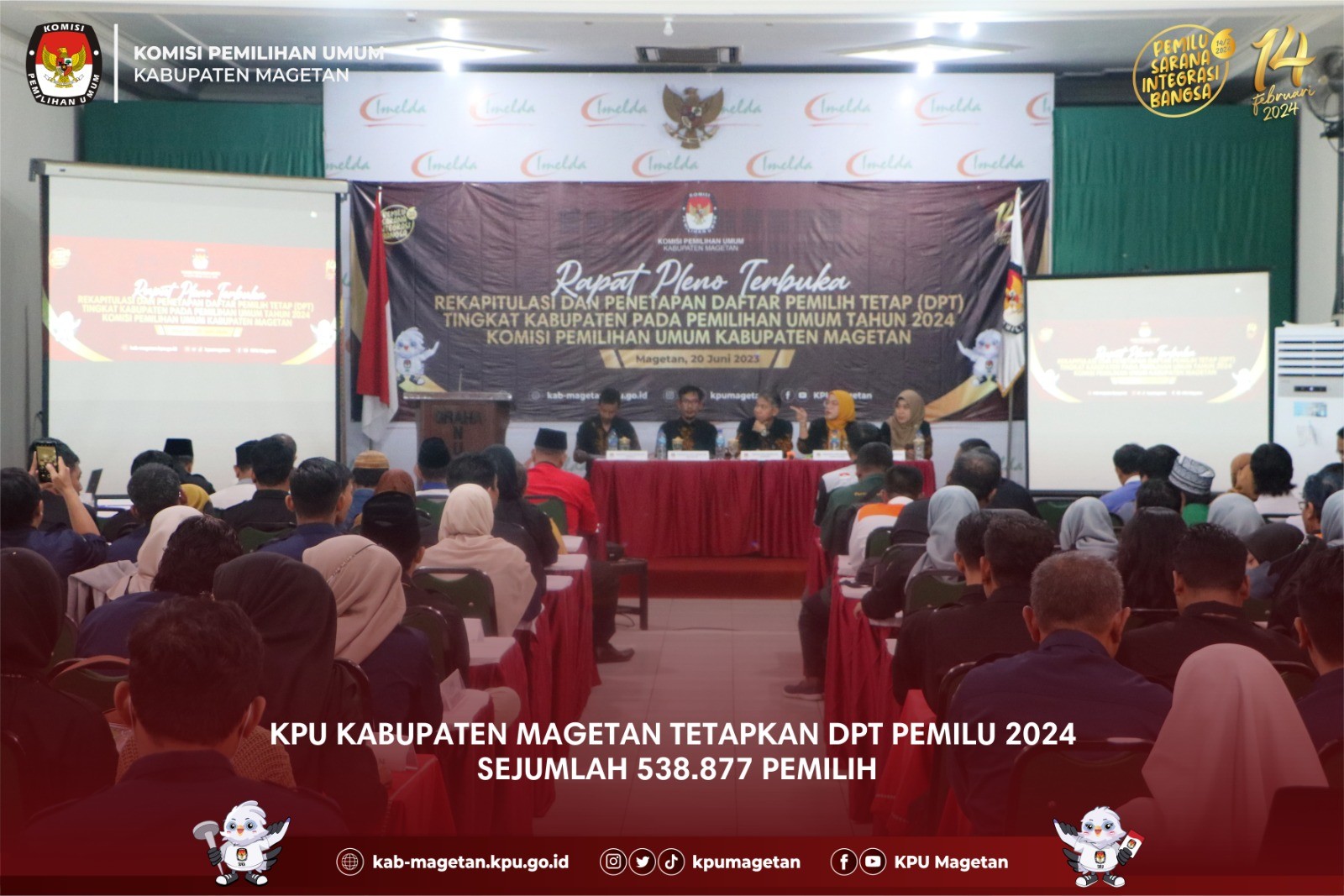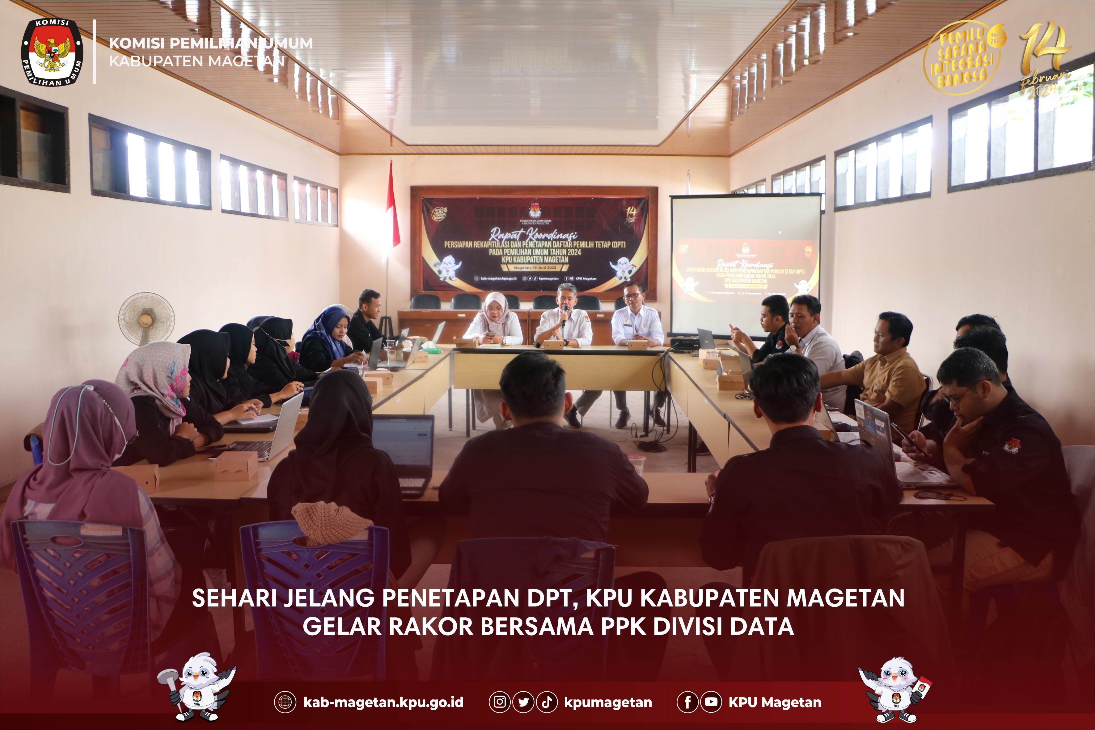 kab-magetan.kpu.go.id - Pemutakhiran Data Pemilih dilakukan oleh KPU Kabupaten Magetan semenjak menerima DP4 (Daftar Penduduk Potensial Pemilih Pemilu) pada 14 Desember 2022. Adapun di tingkat Kabupaten telah memasuki etape akhir saat Daftar Pemilih Sementara Hasil Perbaikan (DPSHP) ditetapkan menjadi Daftar Pemilih Tetap (DPT) di KPU Kabupaten Magetan pada hari ini, Selasa (20/6). KPU Kabupaten Magetan hadirkan Pihak terkait dalam Rapat Pleno Terbuka Rekapitulasi dan Penetapan Daftar Pemilih Tetap (DPT) tingkat Kabupaten pada Pemilu 2024.Ketua KPU Magetan Fahrudin menyampaikan terkait Rapat Pleno Terbuka Rekapitulasi dan Penetapan Daftar Pemilih Tetap (DPT) tingkat Kabupaten pada Pemilu 2024 diantaranya menerima masukan dan tanggapan masyarakat sebelum penetapan DPT. “Kami ingin memastikan pelaksanaan Rapat Pleno Terbuka Rekapitulasi dan Penetapan Daftar Pemilih Tetap (DPT) tingkat Kabupaten pada Pemilu 2024 ini menghasilkan Daftar Pemilih yang Valid dan akurat, KPU Magetan membuka masukan tanggapan masyarakat dengan melampirkan bukti pendukung yang otentik,”Terang Pria yang pernah menjadi Ketua PPK Kecamatan Bendo ini. Anggota KPU Magetan Divisi Perencanaan Data dan Informasi KPU Magetan Nanik Yasiroh dalam Rapat ini menarasikan Alur Panjang sebelum data pemilih ditetapkan menjadi DPT. “Proses Pemutakhiran Data semenjak Daftar Pemilih Sementara Hasil Perubahan (DPSHP) melalui pencermatan, tanggapan masyarakat serta proses pengawasan jajaran Bawaslu Magetan di setiap tingkatan, ”Terang Perempuan yang pernah mengampu divisi data di PPK Bendo ini. “Dalam Rapat Pleno Terbuka Rekapitulasi dan Penetapan Daftar Pemilih Tetap (DPT) tingkat Kabupaten pada Pemilu 2024 KPU Magetan menetapkan sejumlah 538.877 Pemilih dengan rincian Jumlah Pemilih Laki laki sebanyak 263.722 sedangkan Jumlah Pemilih Perempuan sebanyak 275.155, di 18 Kecamatan 235 kelurahan/desa,”Pungkasnya. Ketua Bawaslu Kabupaten Magetan Muries Subiyantoro menyampaikan bahwa Daftar Pemilih bersifat Mobile ada yang meninggal dunia, purna tugas TNI/Polri maka kedepan perubahan ini akan terus dalam Pengawalan Bawaslu. “Tentu proses perubahan data harus memastikan masyarakat terjamin hak pilihnya, Bawaslu akan dalam koridor mengawasi hak pemilih pasca Penetapan DPT hari ini karena Daftar pemilih sifatnya mobile ada yang meninggal dunia yang harus dicoret, ada TNI/Polri yang purna tugas, termasuk Pemilih Pemula dipastikan masuk dalam Daftar Pemilih. “Terang Pria yang Pernah menjadi Anggota KPU Magetan ini”.(sgt)