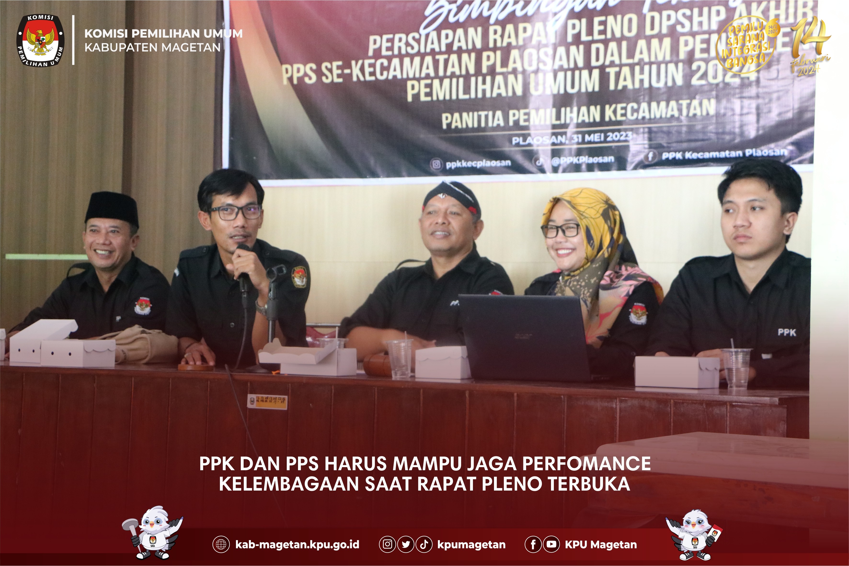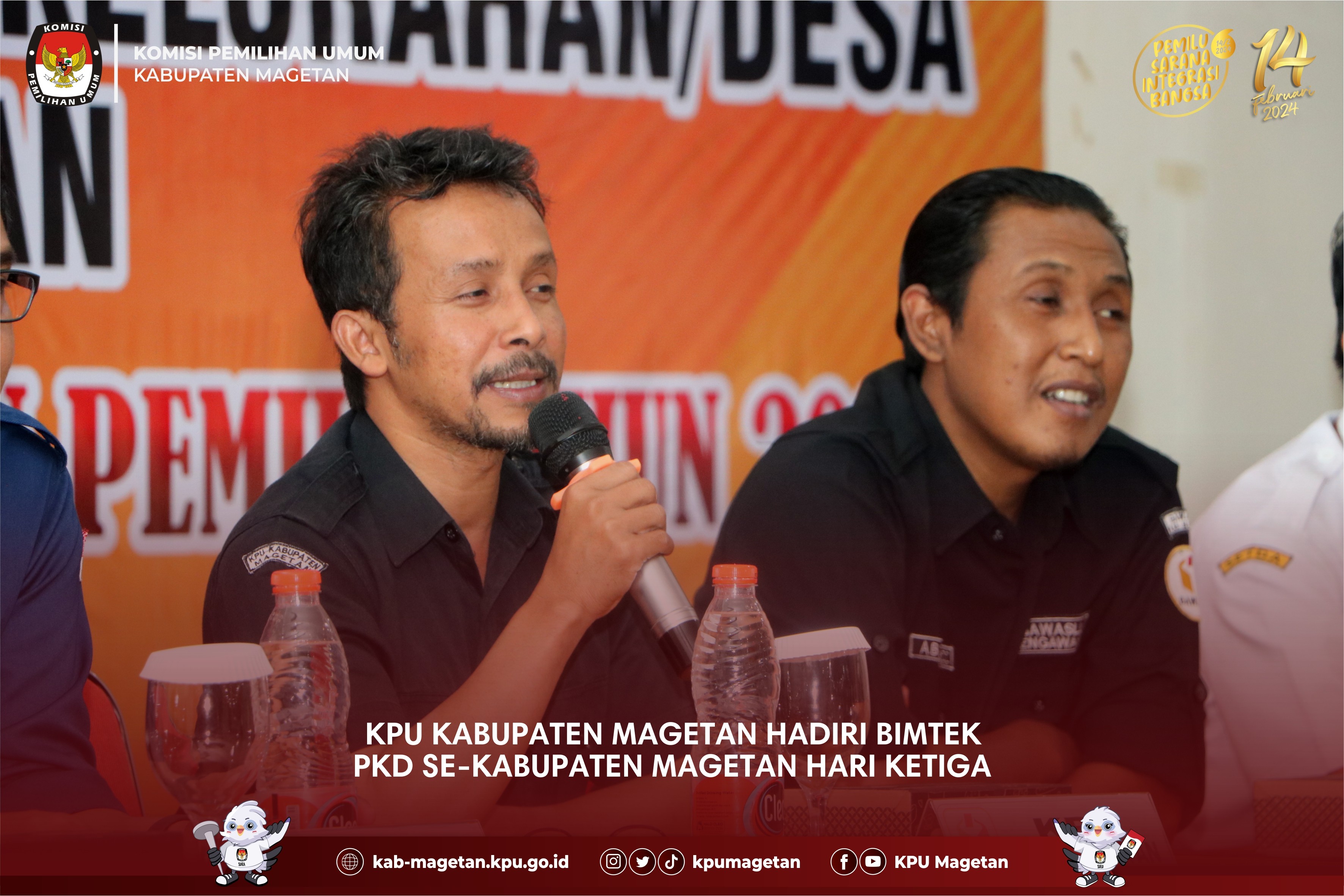 kab-magetan.kpu.go.id Komisi Pemilihan Umum Kabupaten Magetan Melakukan Monitoring Bimbingan Teknis Tata Cara Pelaksanaa Rapat Pleno di tingkat PPS yang dilakukan 18 PPK Rabu (31/05). Ketua KPU Magetan Fahrudin menjelaskan KPU Magetan ingin memastikan Pentingnya Kegiatan Bimbingan Teknis Tata Cara Pelaksanaan Rapat Pleno berjalan dengan baik menurunkan Tim Monitoring. “Pentingnya Tata Cara Pelaksanaan Rapat Pleno tingkat PPK dan PPS maka Kami menurunkan Tim Monitoring Kegiatan tersebut hari ini,” Terang Pria Kelahiran Wonogiri ini. Ditambahkan Anggota KPU Magetan Divisi Hukum dan Pengawasan Ismangil Pihaknya ingin memastikan Penyelenggara Pemilu Tingkat Kecamatan dan Kelurahan/ desa memiliki kemampuan yang sama serta memahami Standar Operasional Prosedur terkait Pelaksanan Tata Cara Rapat Pleno . “Dalam Rapat Pleno PPK dan PPS harus mampu menampilkan performance yang baik sesuai dengan Tata Cara yang sudah ditetapkan, selain dari itu Kegiatan Rapat Pleno harus Mampu menampilkan Marwah Kelembagaan ,”Pungkas Pria Kelahiran Panekan ini.(sgt)