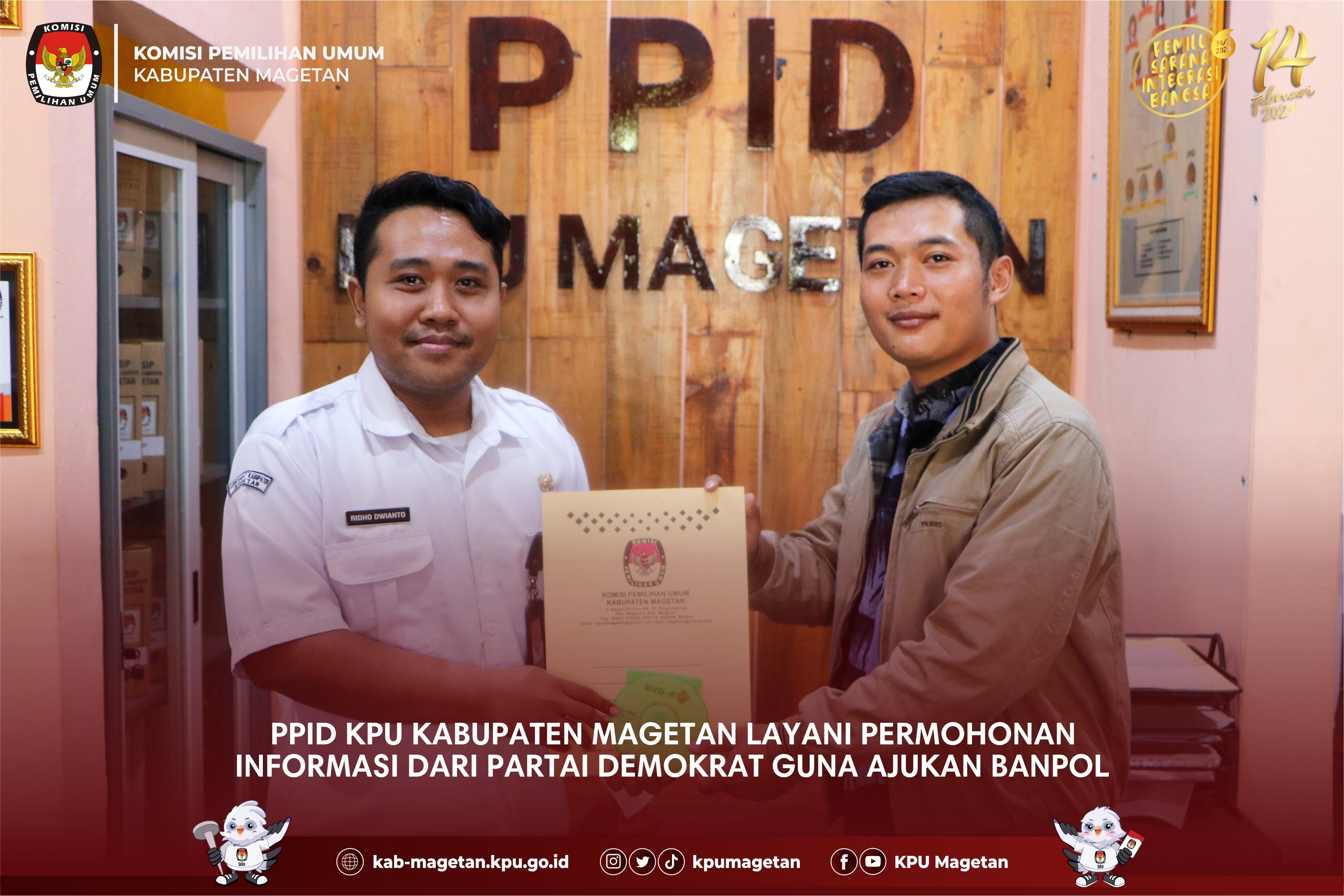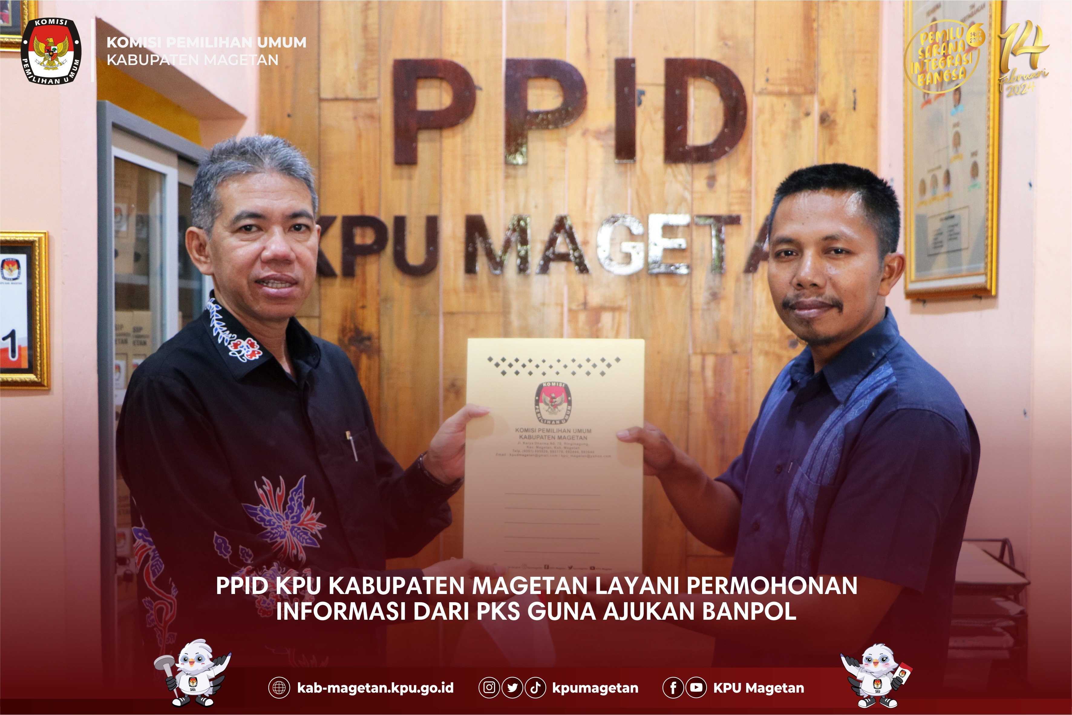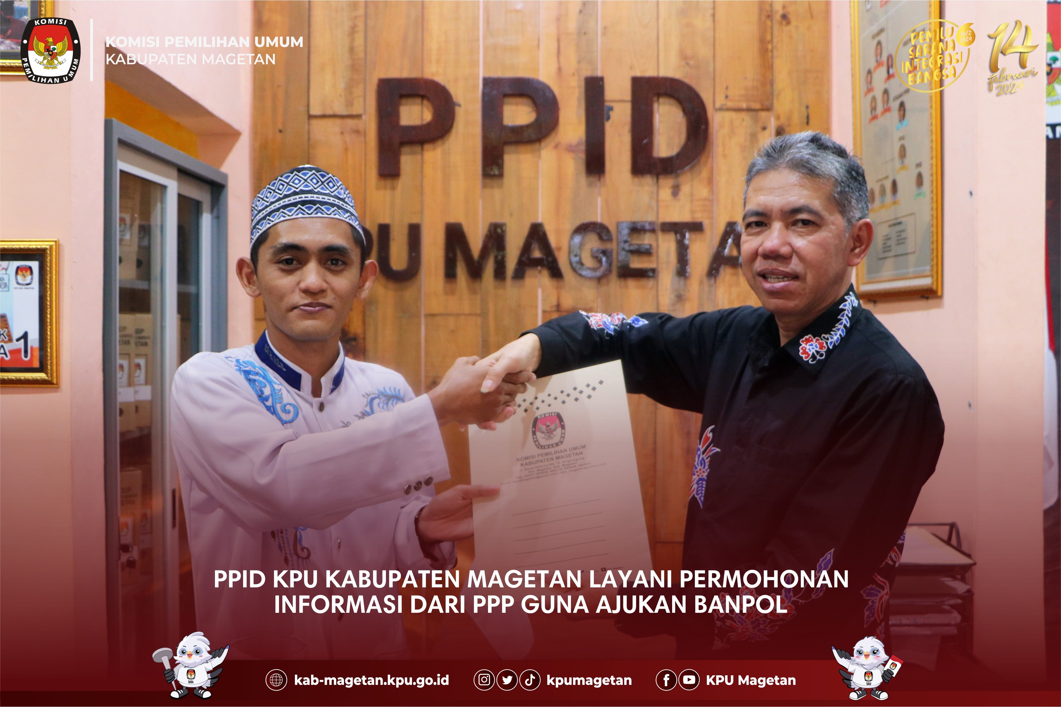 kab-magetan.kpu.go.id - PPID KPU Kabupaten Magetan berikan pemenuhan permohonan informasi kepada Partai Persatuan Pembangunan (PPP), Senin (22/5). Memo Prasetyo, Liaison Office (LO) dari Partai Persatuan Pembangunan Magetan hadir langsung guna mengajukan permohonan informasi kepada PPID KPU Kabupaten Magetan. "Adapun maksud kedatangan saya sebagai perwakilan dari Partai Persatuan Pembangunan Magetan kali ini adalah untuk meminta data autentifikasi hasil Pemilu 2019 di Kabupaten Magetan yang nantinya akan kami gunakan untuk mengajukan bantuan keuangan parpol ke Bakesbangpol Magetan." Ungkapnya. Permohonan informasi tersebut langsung diproses oleh petugas PPID KPU Kabupaten Magetan yang sedang bertugas, Bakri Siminggus. Tak butuh waktu lama, permohonan informasi diproses sesuai dengan SOP diantaranya mengisi formulir permohonan disertai foto copy KTP pemohon. Dokumen langsung diserahkan setelah melalui proses legalisasi oleh sekretariat dan Pimpinan KPU Kabupaten Magetan. Proses pemenuhan permohonan informasi ini juga didampingi langsung oleh Ketua KPU Kabupaten Magetan, Fahrudin. Ia menyampaikan bahwa pelayanan informasi di PPID KPU Kabupaten Magetan yang diajukan oleh PPP dapat langsung dipenuhi pada hari yang sama disaat permohonan informasi tersebut tersampaikan ke PPID KPU Kabupaten Magetan. "Permohonan informasi dari PPP dapat kami selesaikan tanpa membutuhkan waktu yang lama karena begitu permohonan informasi ini kami terima, maka petugas PPID KPU Kabupaten Magetan langsung memprosesnya sesuai dengan SOP yang berlaku." Jelasnya. (br)