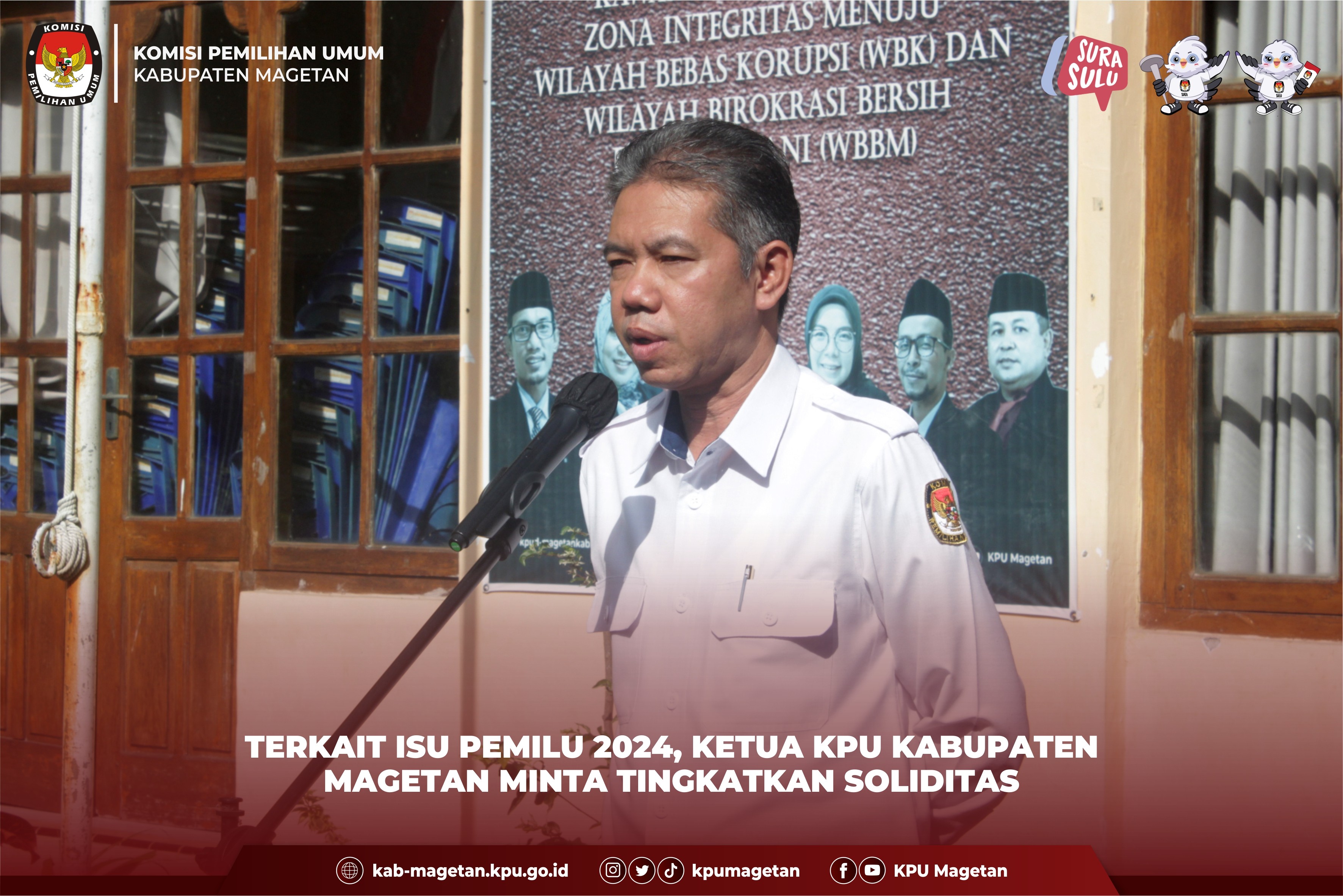 kab-magetan.kpu.go.id - Komisi Pemilihan Umum Kabupaten Magetan bersama 90 Anggota Panitia Pemilihan Kecamatan (PPK) serta 705 Anggota Panitia Pemungutan Suara (PPS) Menghadiri Konsolidasi Wilayah dalam rangka penyusunan Daftar Pemilih Pemilu 2024 melalui daring yang dilaksanakan Komisi Pemilihan Umum Provinsi Jawa Timur, Minggu (5/2). Ketua KPU Provinsi Jawa Timur Choirul Anwar mengapresiasi soliditas kinerja badan adhock dalam menjalankan tahapan Pemilu 2024. “Tentunya Kami mengharapkan tingkatkan Soliditas kelembagaan, Jiwa korsa kebersamaan antar penyelenggara pemilu serta jalin Sinergisitas yang baik dengan Pengawas Pemilu Kecamatan (Panwascam) dan Pengawas Pemilu Kelurahan/ Desa (PKD),”Terang Pria lulusan Universitas Negeri Surabaya jurusan bahasa jepang ini. “Konsolidasi Malam ini sebagai bentuk bahwa seluruh jajaran Penyelenggara Pemilu di Jawa Timur dalam posisi Siap menyelenggarakan serta Mensukseskan Pemilu 2024,”Imbuh Pria yang pernah menjadi Anggota KPU Kota Surabaya ini. “Data Pemilih menjadi dasar pengadaan Logistik Pemilu, selain itu sebagai salah satu cara memastikan masyarakat yang memenuhi syarat untuk bisa menggunakan hak konstitusionalnya maka Pemutakhiran secara Valid, Komprehensif, akurat, dan Mutakhir menjadi sangat Penting,” Kemudian Anggota KPU Jatim Divisi Data dan Informasi Nurul Amalia meminta kepada seluruh jajaran agar mengawal proses coklit untuk memastikan sudah berjalan sesuai prinsip prinsip pembentukan TPS. “Beberapa yang perlu dicermati terkait perkembangan Data Pemilih yaitu memastikan Pemilih per TPS tidak melebihi 300 Pemilih, cek kegandaan sebelum mengunggah ke Sidalih, memastikan tidak ada NKK terpisah TPS, serta mengecek ulang Data Pemilih yang akan di unggah sudah sesuai,” Terang Perempuan lulusan Universitas Airlangga Surabaya ini. “Pelaporan hasil Penelitian dan Pencocokan / coklit oleh Pantarlih ke PPS, Pantarlih menyerahkan kelengkapan dokumenhasil coklit kepada PPS meliputi Daftar Pemilih hasil Coklit (FormulirModel A-Daftar Pemilih), Daftar Pemilih baru ( Formulir Model A-Daftar Potensial Pemilih), Laporan hasil Coklit (Formulir Model A- Laporan Hasil Coklit), Buku kerja Pantarlih, Potensialalamat TPS, serta memastikan Pemilih sudah tersinkronsemua di website eCoklit dengan dibantu PPS,”Pungkasnya. Sementara itu Anggota Divisi Sosialisasi, Pendidikan Pemilih dan Partisipasi Masyarakat KPU Jatim Gogot Cahyo Baskoro menegaskan kembali terkait tugas tambahan yang dibebankan pada Pantarlih terkait mensosialisasikan Akun media Sosial KPU RI, KPU Provinsi Jawa Timur , KPU Kabupaten. “Perlu Kami lakukan penegasan kembali bahwa seluruh Jajaran Penyelenggara Pemilu wajib memiliki akun media sosial, serta Kita bergerak bersama memfollow akun Media Sosial yang dimiliki KPU,”Terang Pria Kelahiran Magetan ini. “Dalam proses rekrutment Badan adhoc selama ini diantaranya memperhatikan kemampuan Teknologi Informasi maka, PPK dan PPS harus memaksimalkan akun kelembagaan dalam mensosialisasikan informasi terkait semua Tahapan Pemilu yang sedang berjalan, tahapan yang sedang berjalan saat ini adalah Pemutakhiran Data Pemilih oleh Pantarlih yang mendatangi dari rumah ke rumah, Maka tugas tambahan Pantarlih mensosialisasikan Akun media Sosial KPU RI, KPU Provinsi Jawa Timur , KPU Kabupaten, Pungkas Lulusan Fakultas Ilmu Sosial dan Ilmu Politik Universitas Jember ini.(sgt).