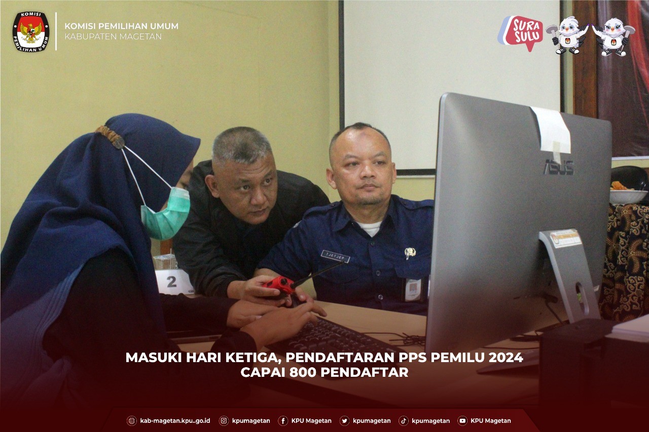 kab-magetan.kpu.go.id - Pendaftaran PPS Pemilu 2024 di KPU Kabupaten Magetan telah memasuki hari ketiga. Per hari ini, Selasa (20/12) tim helpdesk badan AdHoc KPU Kabupaten Magetan mencatat lebih dari 800 pendaftar yang telah mendaftar sebagai anggota PPS. "Lebih dari 800 orang yang telah mendaftar sebagai calon anggota Panitia Pemungutan Suara baik yang langsung dari aplikasi SIAKBA atau datang langsung ke kantor KPU Kabupaten Magetan. Tentunya jumlah ini akan bertambah mengingat batas akhir pendaftaran masih lama." Ungkap Divisi Sosdiklih Parmas dan SDM KPU Kabupaten Magetan, Nur Salam. Adapun KPU Kabupaten Magetan menyediakan helpdesk fasilitasi dan konsultasi pendaftaran PPS yang akan membantu pelamar dalam proses pendaftaran ini. "Bagi pendaftar yang mengalami kesulitan dalam melakukan pendaftaran, silahkan menghubungi Call Center Helpdesk KPU Kabupaten Magetan atau dapat datang langsung ke kantor KPU Kabupaten Magetan yang siap membantu pelamar." Lanjutnya. Adapun tahapan pendaftaran Panitia Pemungutan Suara untuk Pemilihan Umumtahun 2024 dimulai pada 18 Desember dan akan ditutup pada 27 Desember 2022. (br)