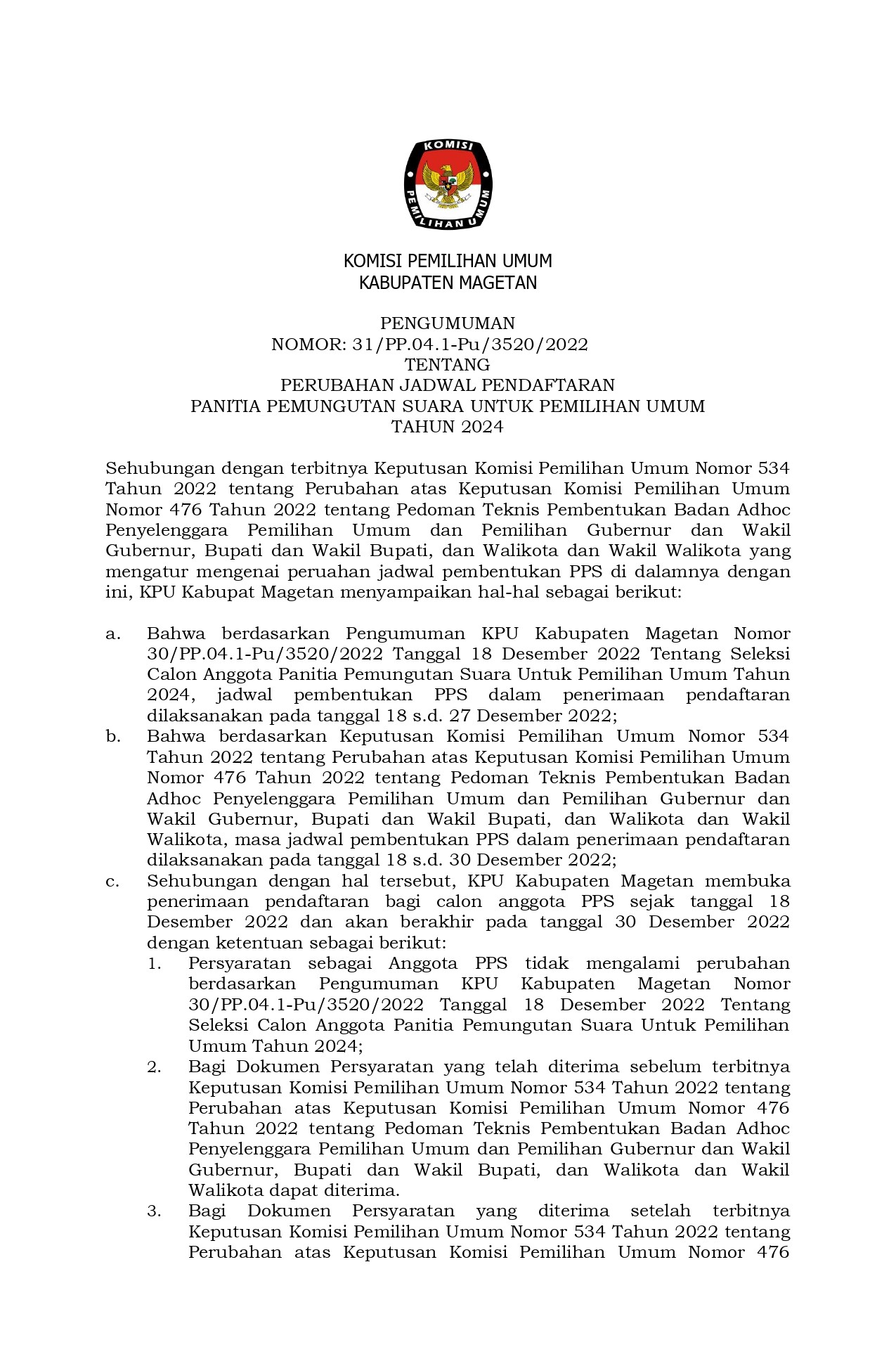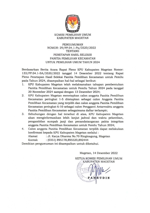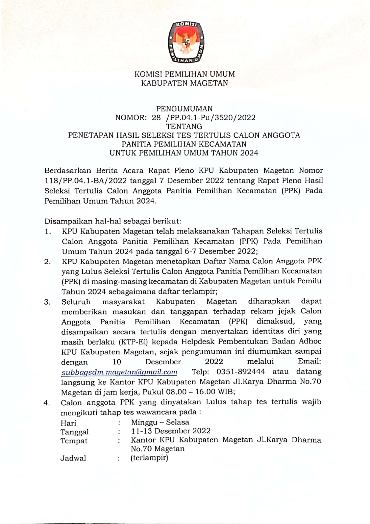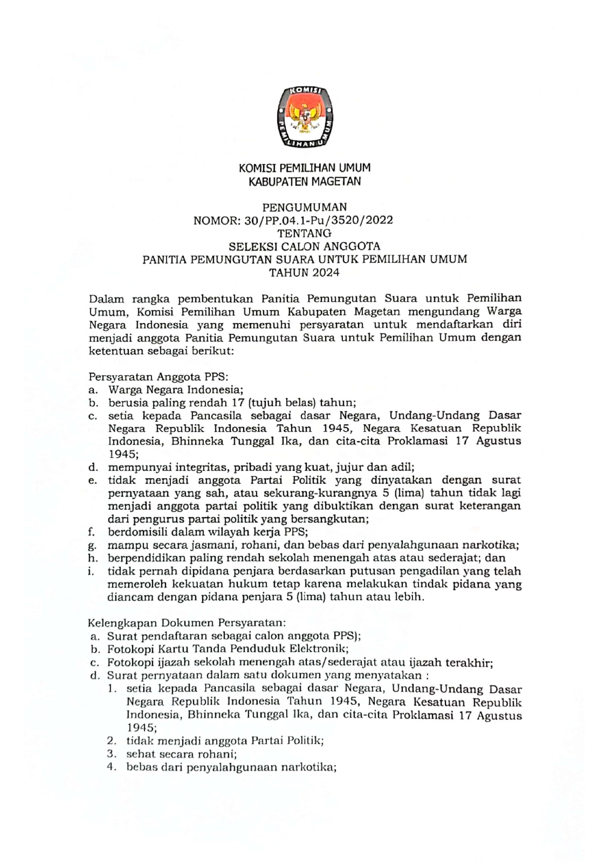 #TemanPemilih, berikut kaami sampaikan terkait Pengumuman Seleksi Calon Anggota Panitia Pemungutan Suara untuk Pemilu Tahun 2024.