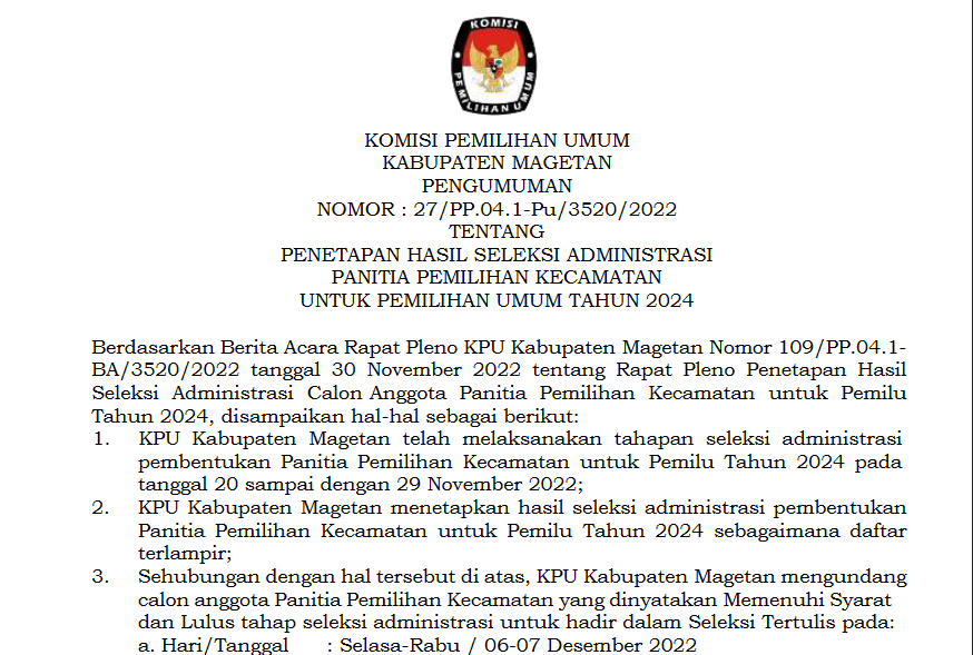 Materi peserta yang tidak terpilih tidak dikembalikan dan tidak akan dipergunakan oleh KPU.