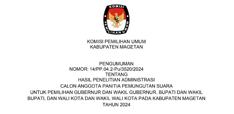 PENGUMUMAN HASIL PENELITIAN ADMINISTRASI PPS PILKADA 2024 Senin, 13 Mei 2024 15:00 975 Pengumuman selengkapnya dapat diakses dengan cara klik DISINI Baca Selengkapnya
